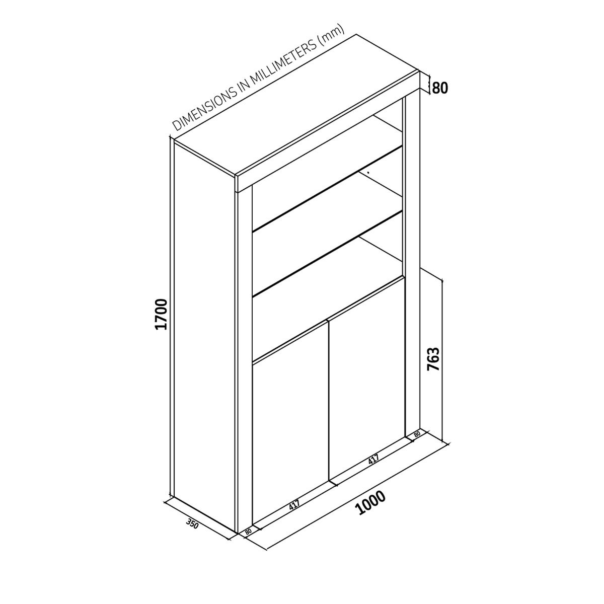 MENTON Display Cabinet 170cm - Grey