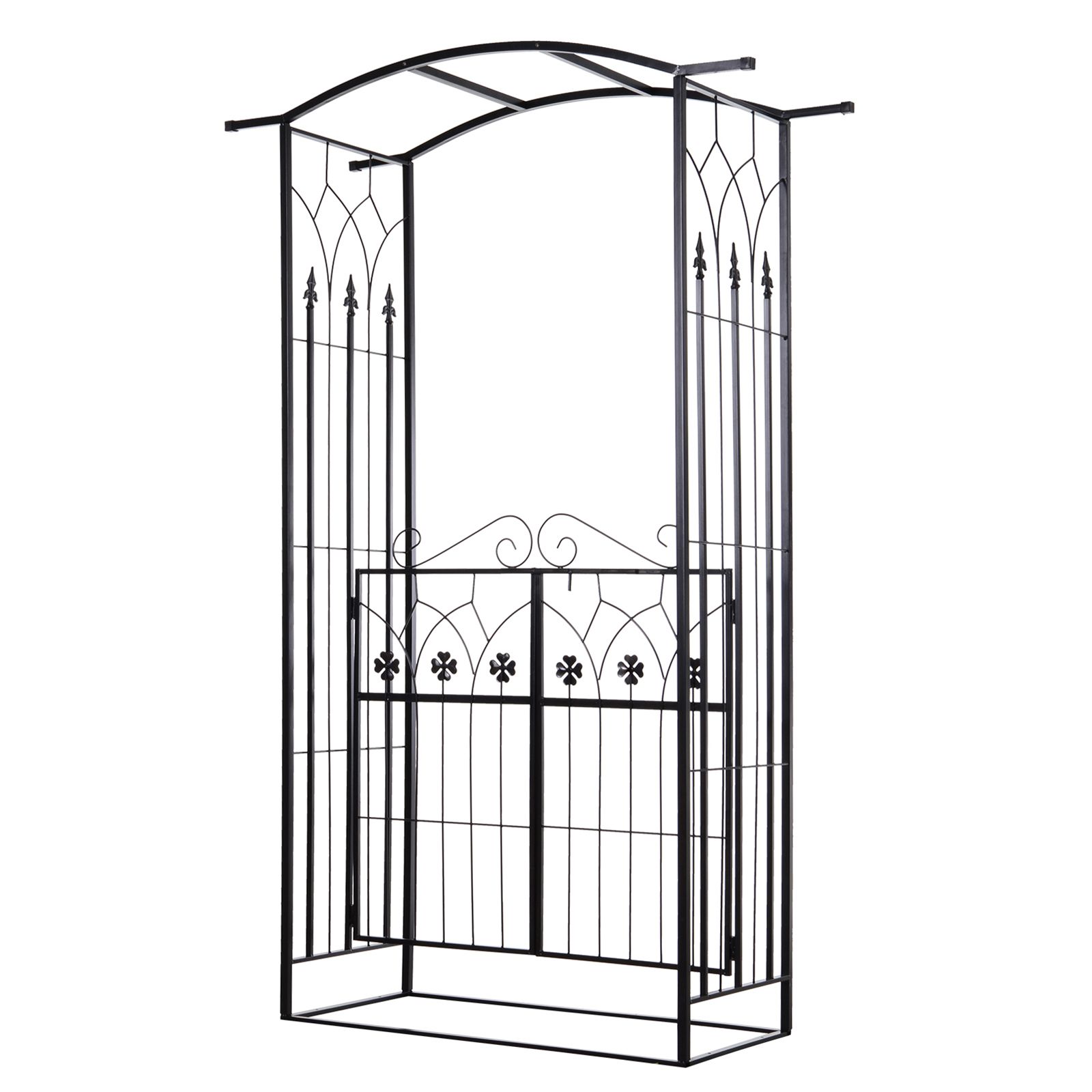 Metal Frame Outdoor Garden Entrance Arch w/ Gate Black