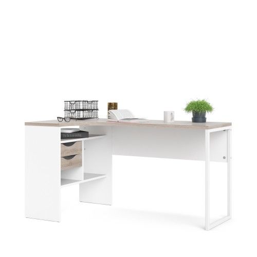 Milton 2 Drawers Corner Computer Desk - White and Truffle Oak