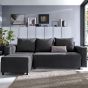 Perfect medium sized corner sofa bed. With its simplistic contemporary styling, Milton oozes class and sophistication. Choice of upholstery fabric is linen, a fabric that is cool to the touch, perfect for when it is used as a sofa bed. Converts to a sofa bed in seconds. Simply tuck away the scatter back cushions into the under-storage to reveal a cozy bed complete with headboard and side bolster, giving your guest their own little private sleep space. The Milton is available in light and dark grey, in a standout brown and an ever neutral black colour. Easily one of the most stylish and affordable corner sofa beds you will find, anywhere.