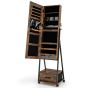 Mobile Standing Lockable Jewelry Cabinet with Full Length Mirror-Coffee