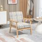 Modern Accent Chairs with Cushioned Seat, Upholstered Linen-Feel Armchair for Bedroom, Living Room Chair with Arms and Wood Legs, Beige