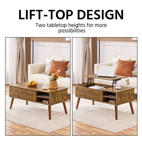 Modern Convenience Guildford Coffee Table with Adjustable Lift Top and Abundant Storage - Rustic Brown