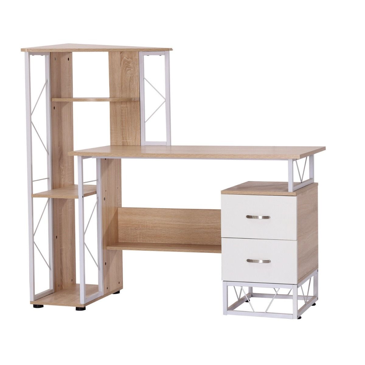 Modern Design 2 Drawers Multi-Shelves Computer Office Table - Oak & White