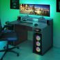 The large gaming desk in dark grey which can also be used as a study desk or office desk. This desk features a hutch and open shelving for storage.