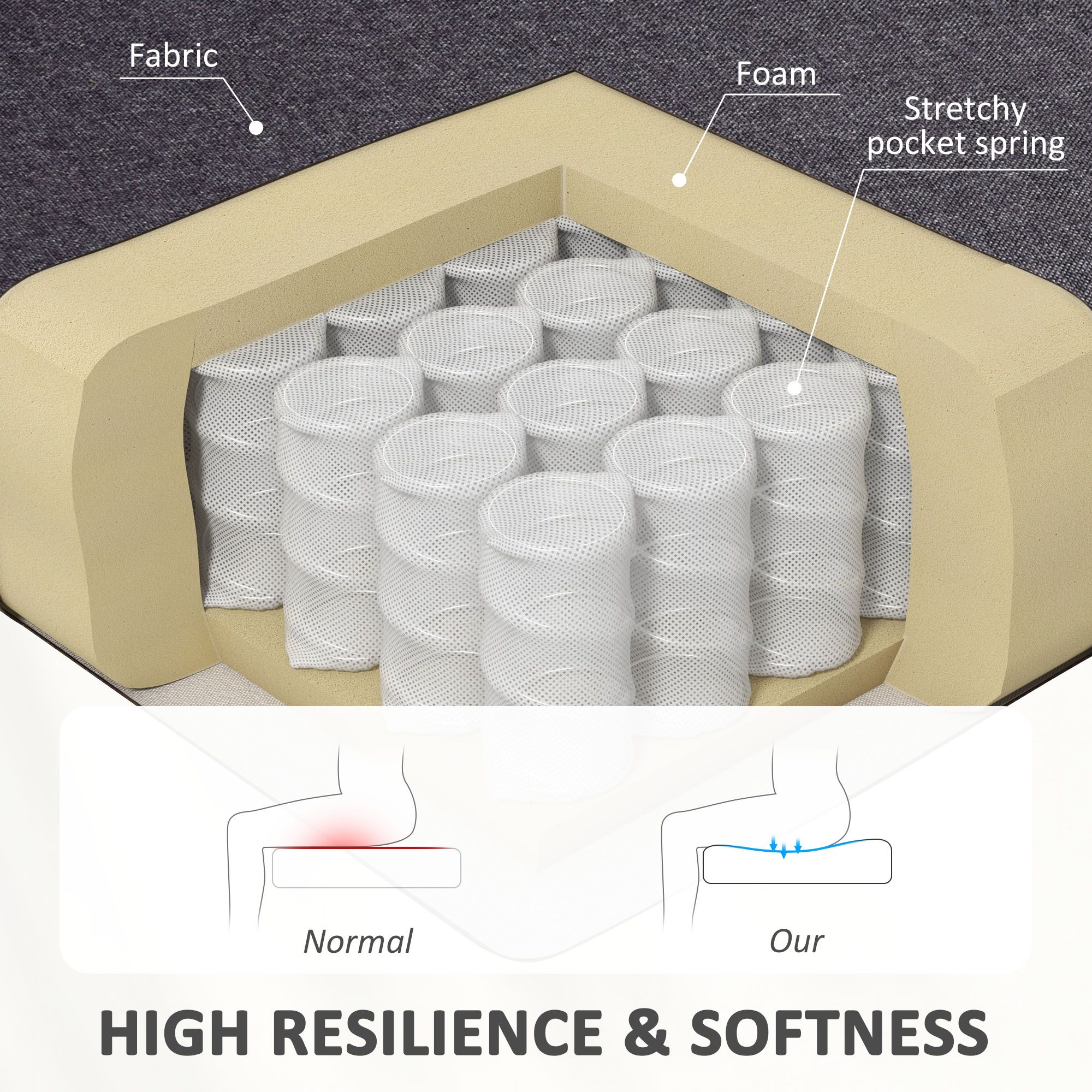 - Wooden frame: Strong structure to fully support the 2 seater sofa, with reinforced legs for extra stability - angled for balance.