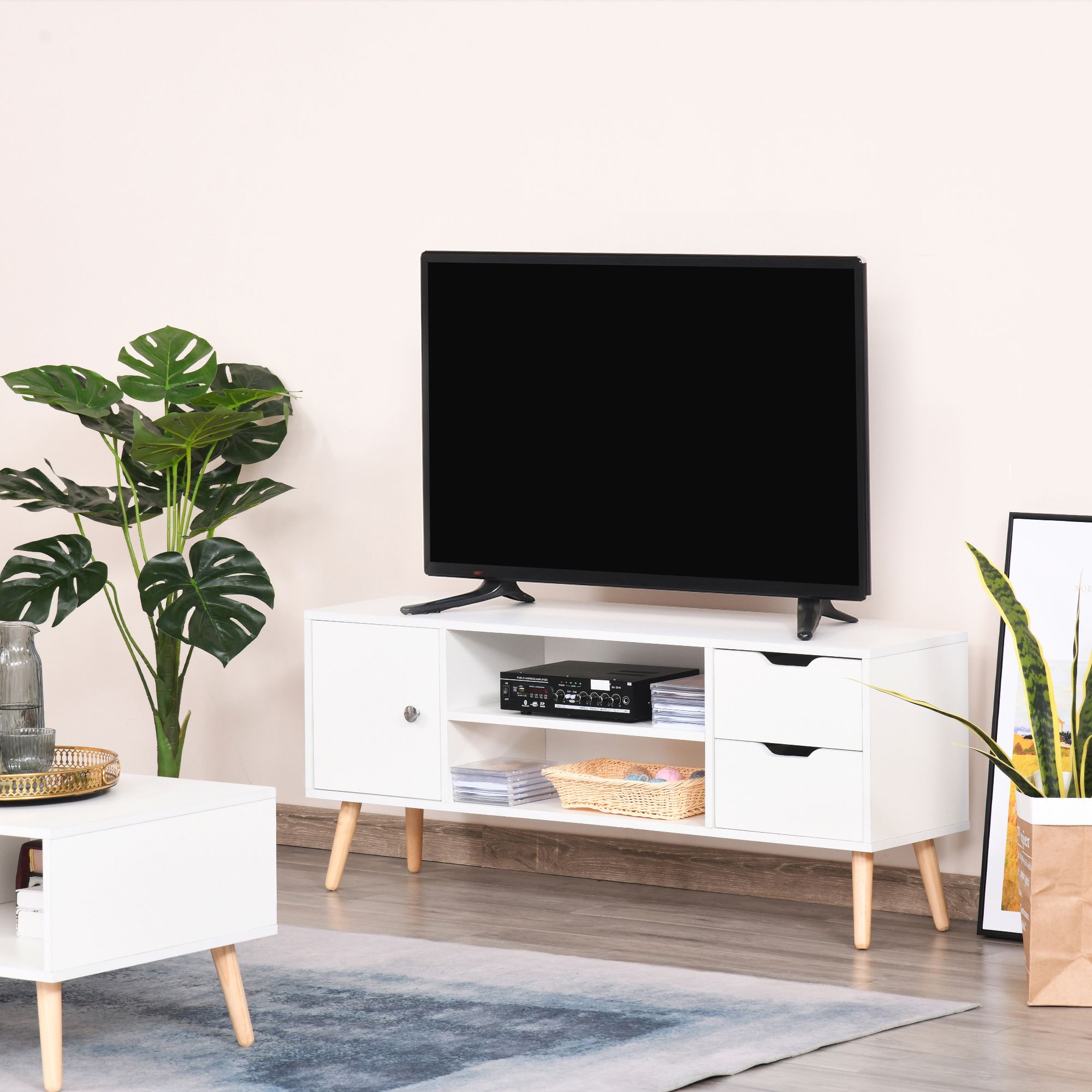 Modern TV Stand for TVs up to 42'' Flat Screen, TV Console Cabinet with Storage Shelf, Drawers, Cable Hole, Living Room and Office, White