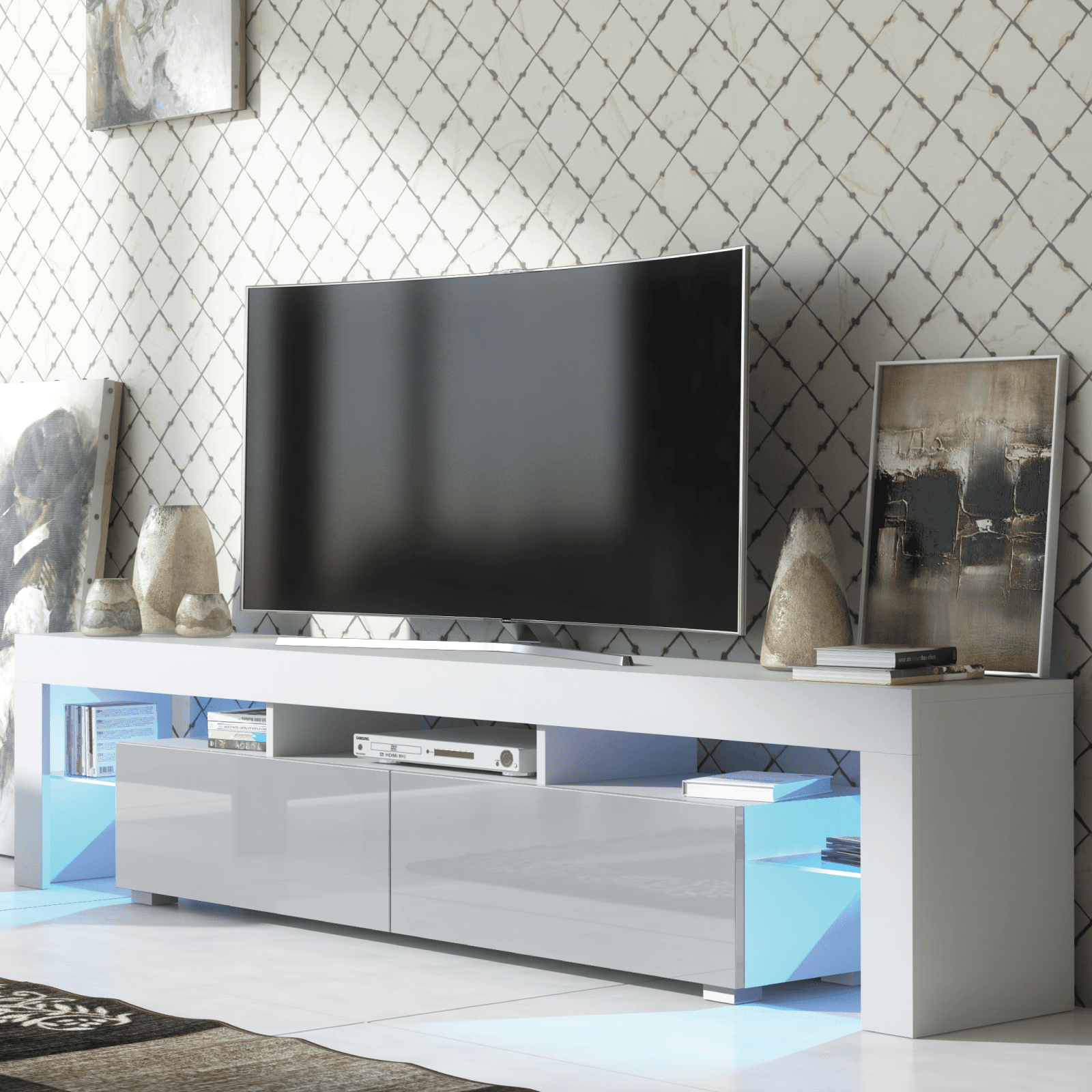 Modern TV Unit Cabinet Sideboard with Free LED Lighting and Ample Storage 200cm - White and Grey