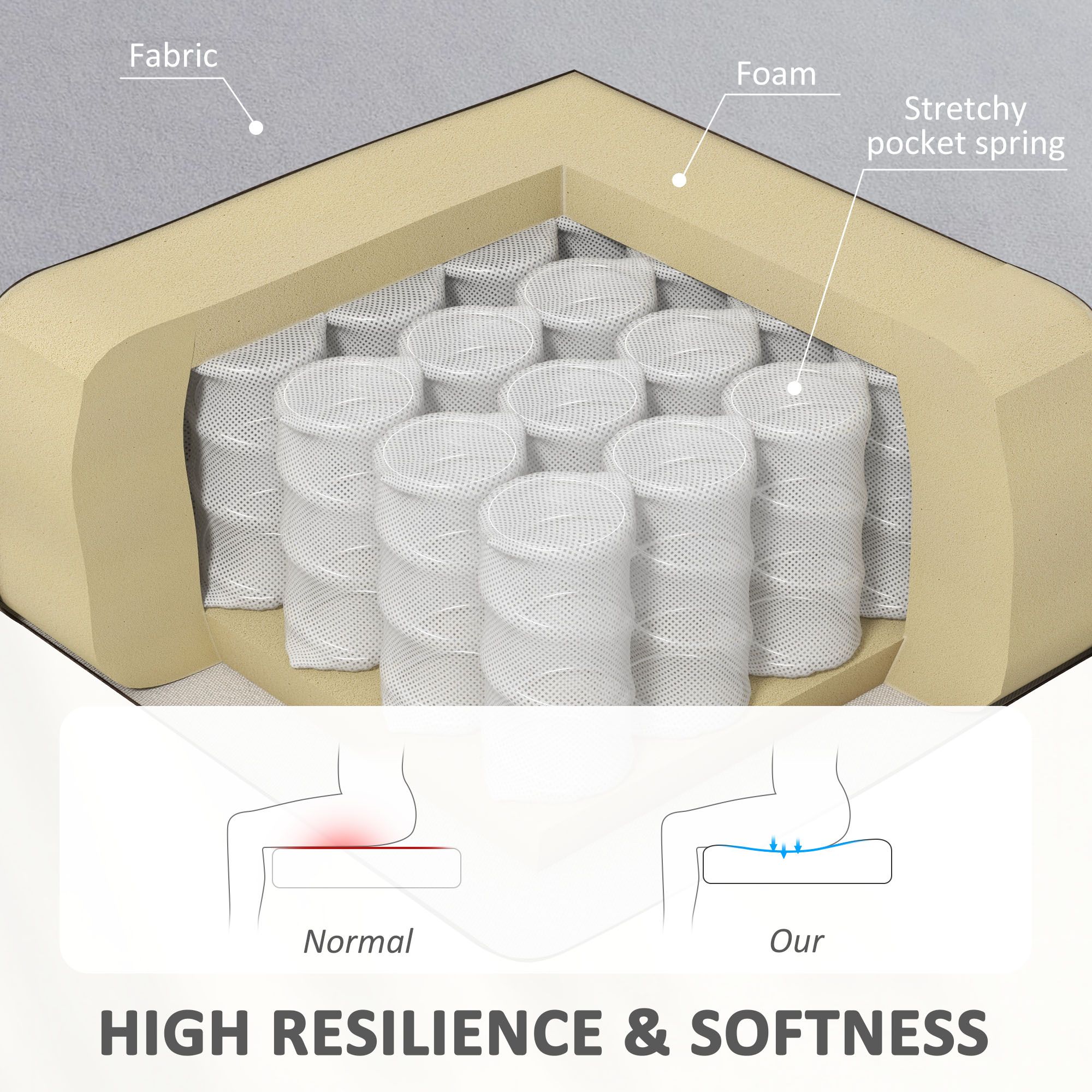- Sturdy frame: Wood frame with solid reinforced wood legs for stability and durability, supports up to 150kg. Pads on feet for floor protection.