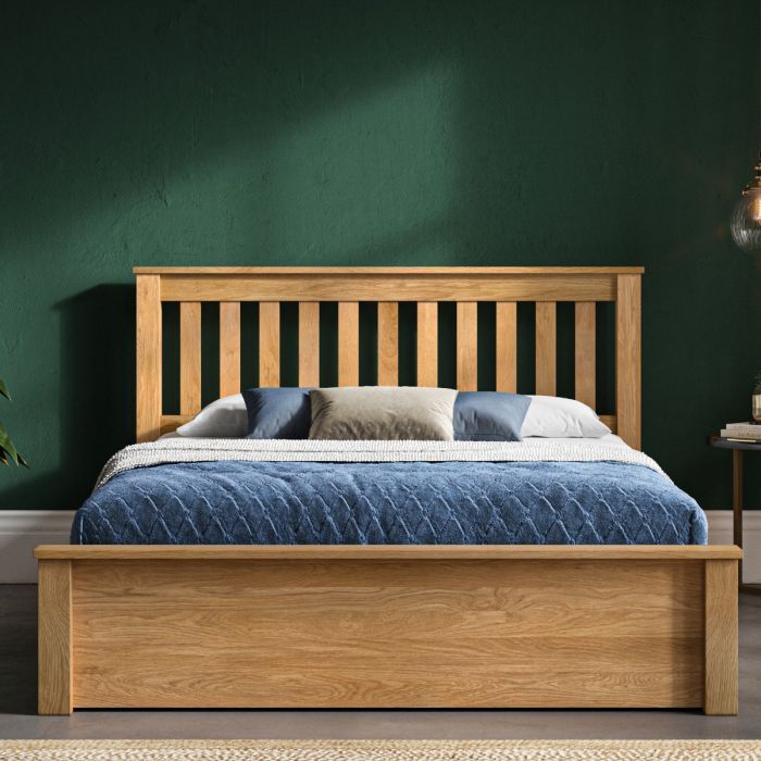 The clear waxed finish highlights the natural oak grain, offering a timeless and sophisticated look while protecting the wood from damage. The unique slat headboard adds elegance and character, making it a stunning centerpiece for any bedroom. Available in double, king, and super king sizes, the Monaco Solid Oak Ottoman Bed combines solid oak construction, a gas lift frame, and a distinctive design to enhance both the look and functionality of your bedroom. Choose the Monaco Solid Oak Ottoman Bed for an investment in quality and style.