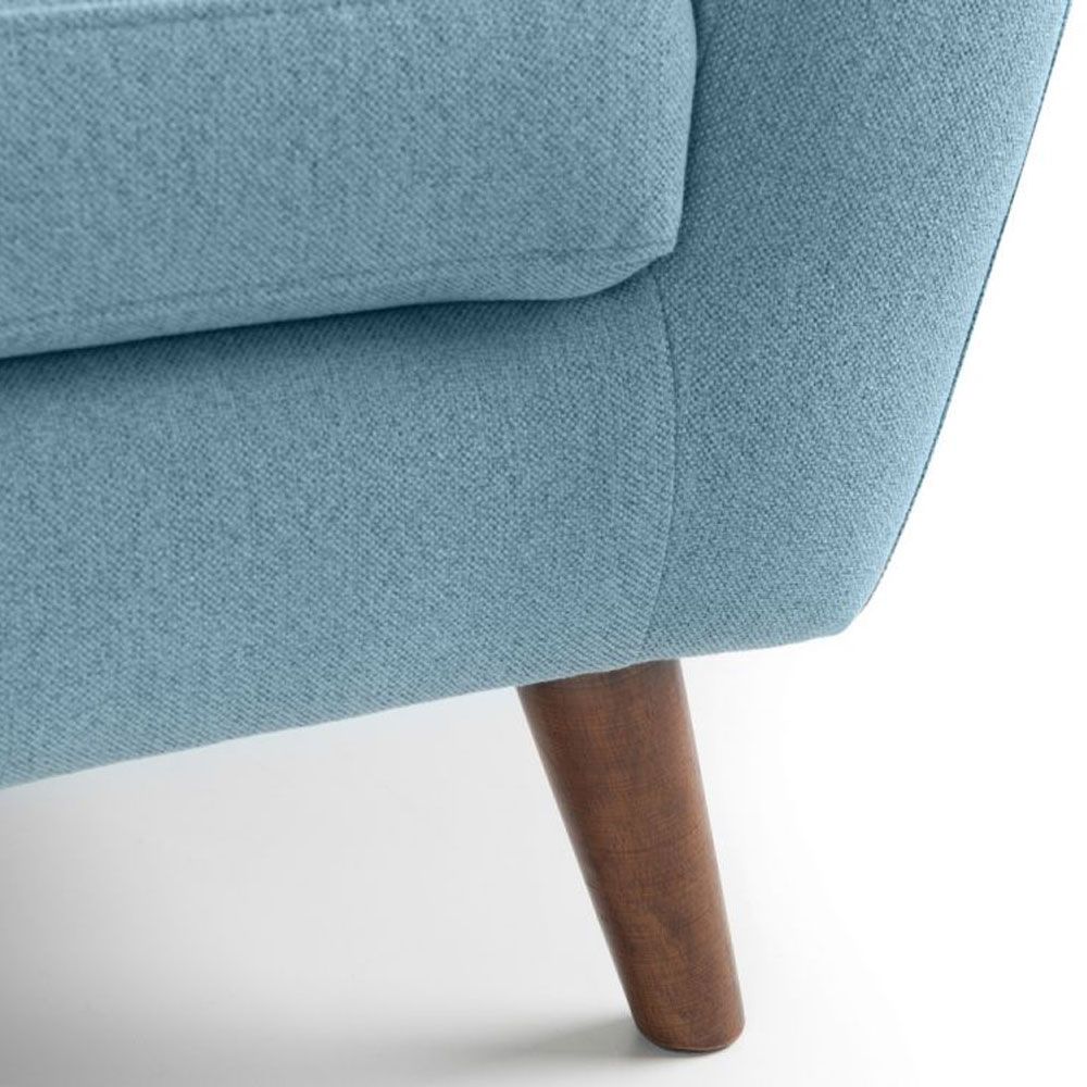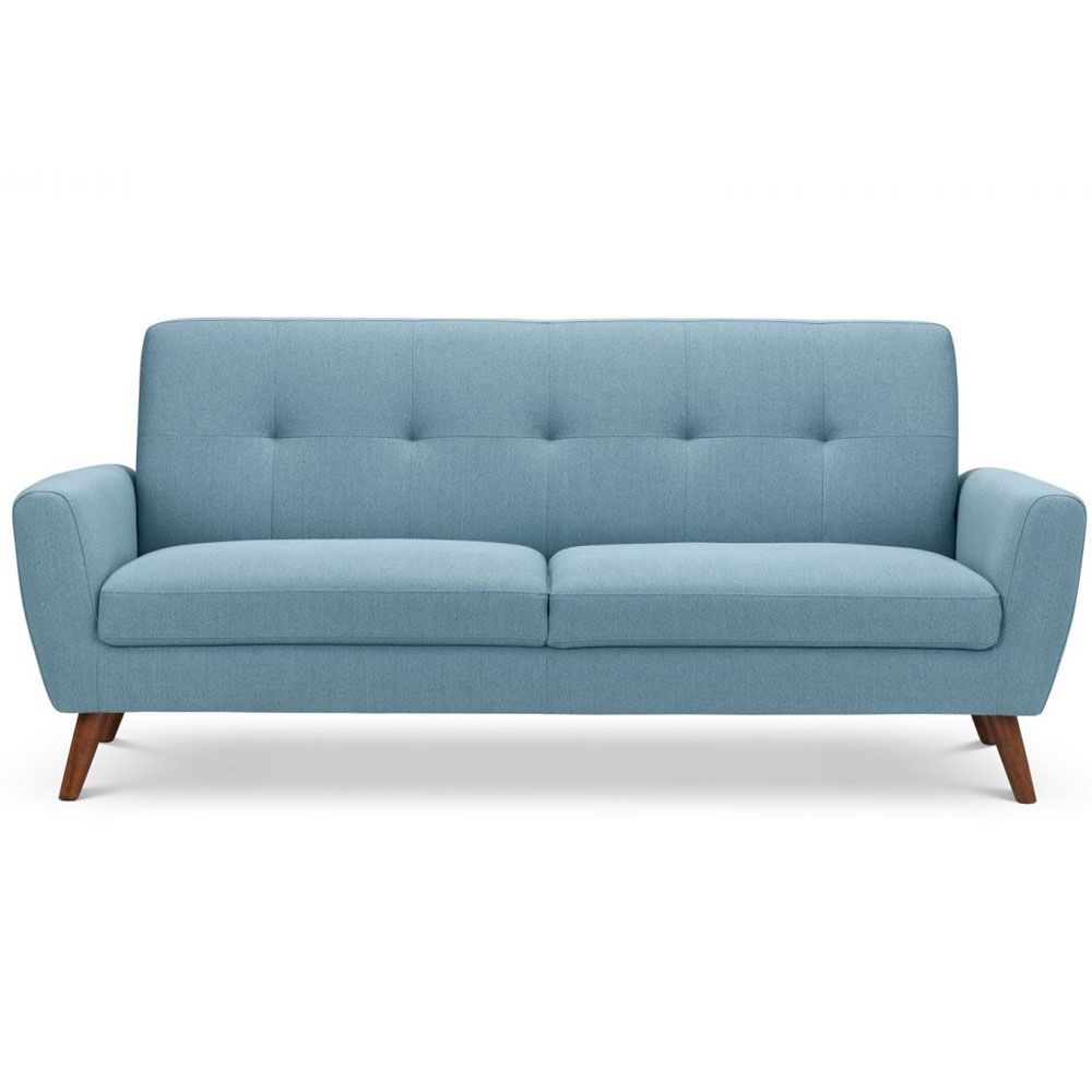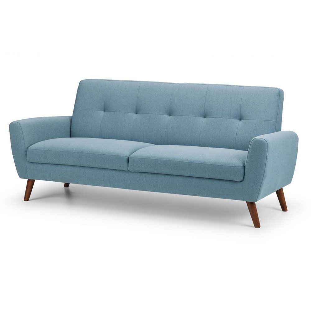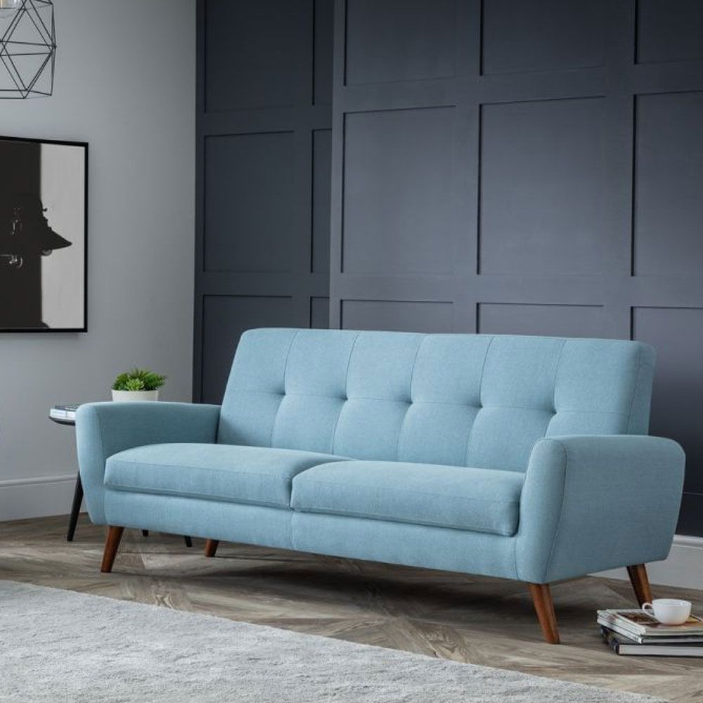 The Monza Three-Seater Sofa is compact and stylish with retro Scandinavian design influences. It is impeccably tailored in a smart, blue linen fabric.