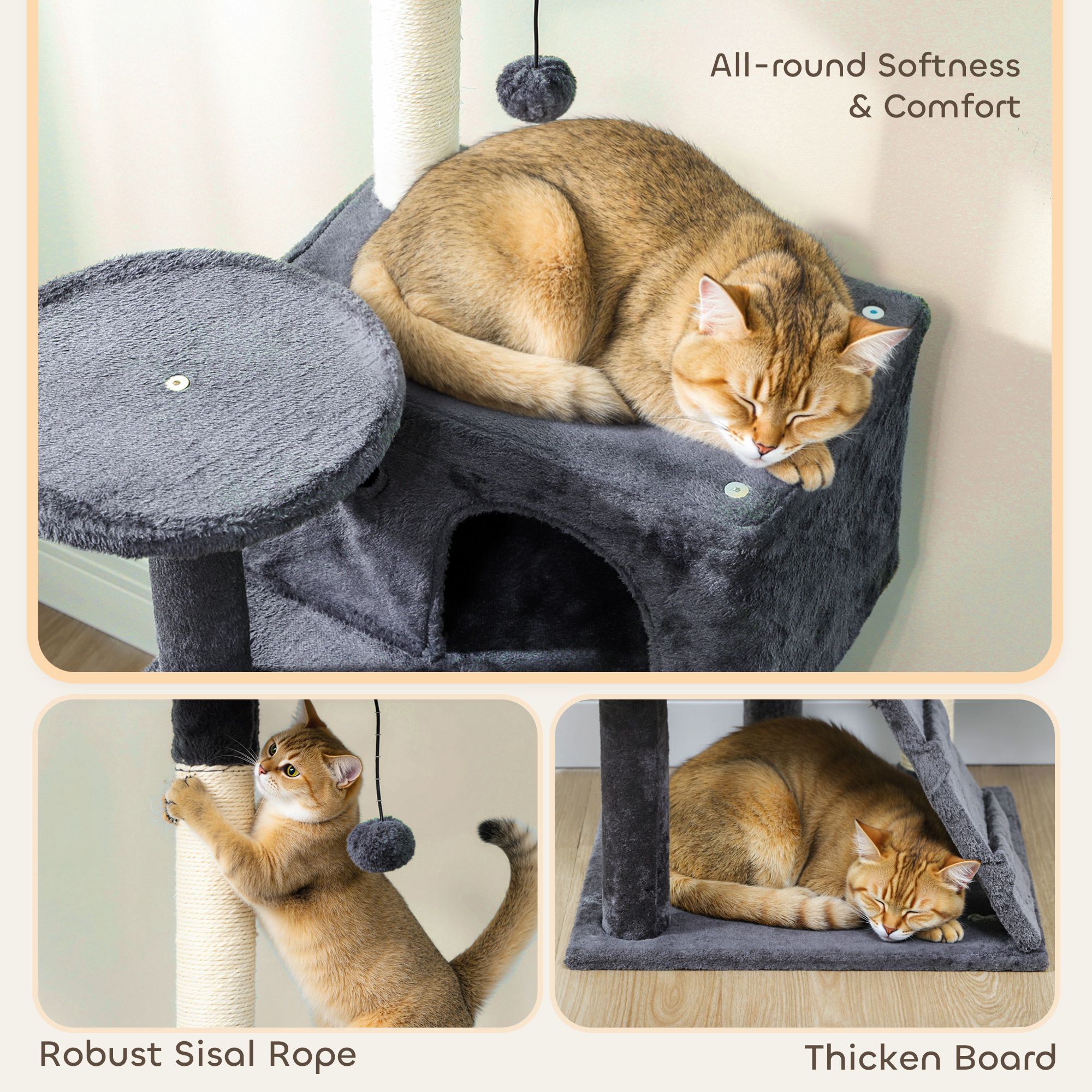MORNYSS Large Cat Tree Tower with Sisal Scratching Posts 160cm - Dark Grey