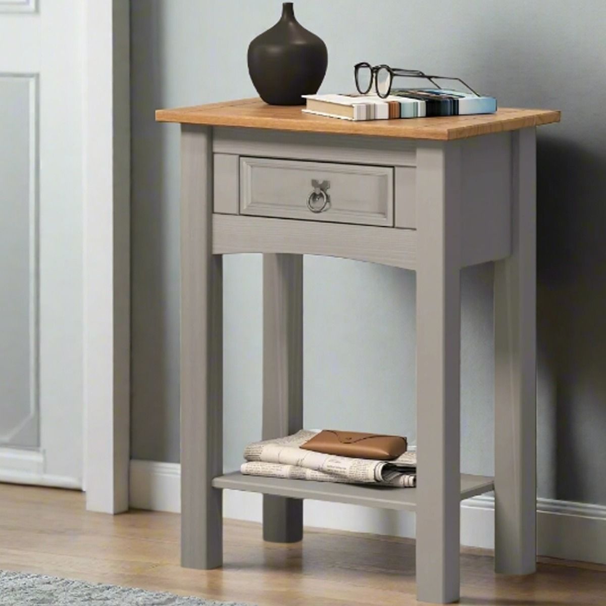MORVANE Side Table Wax Pine with Metal Fittings - Grey