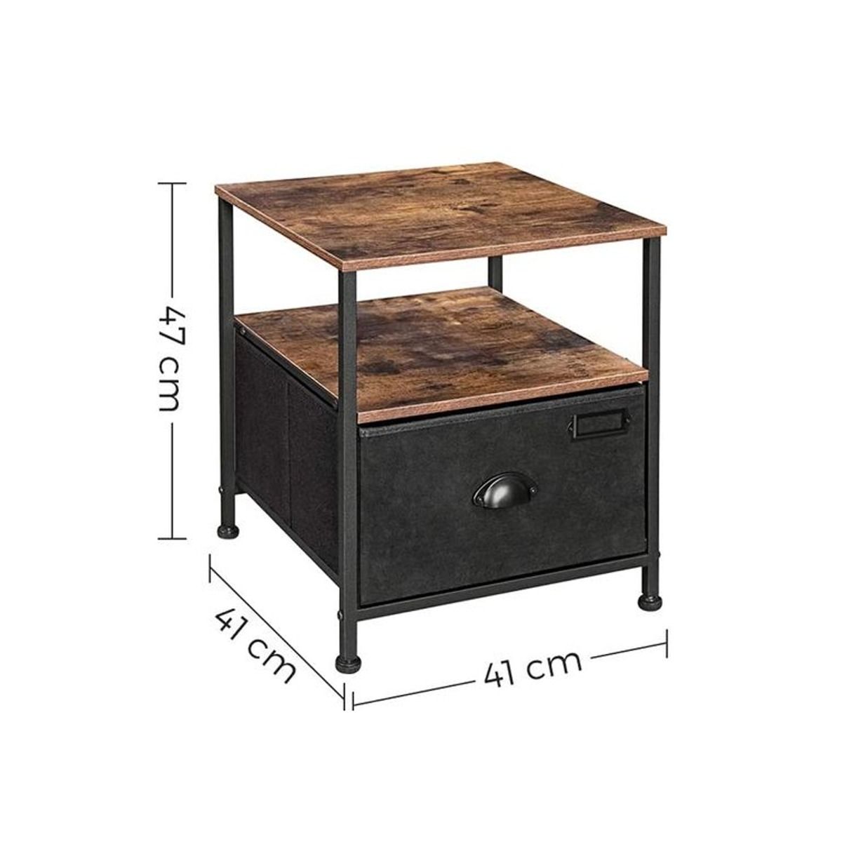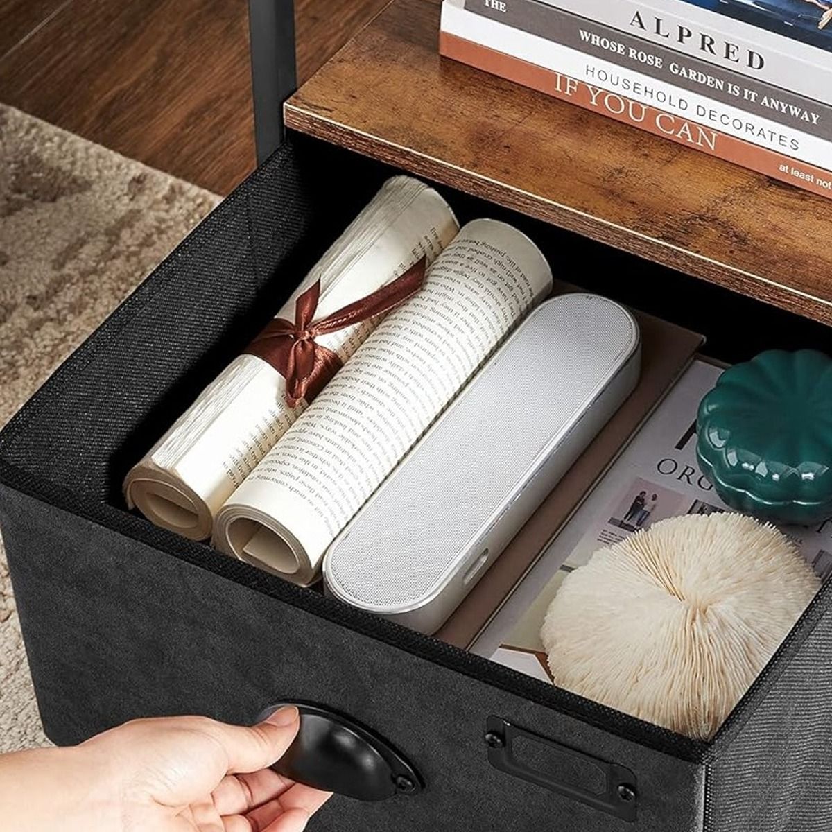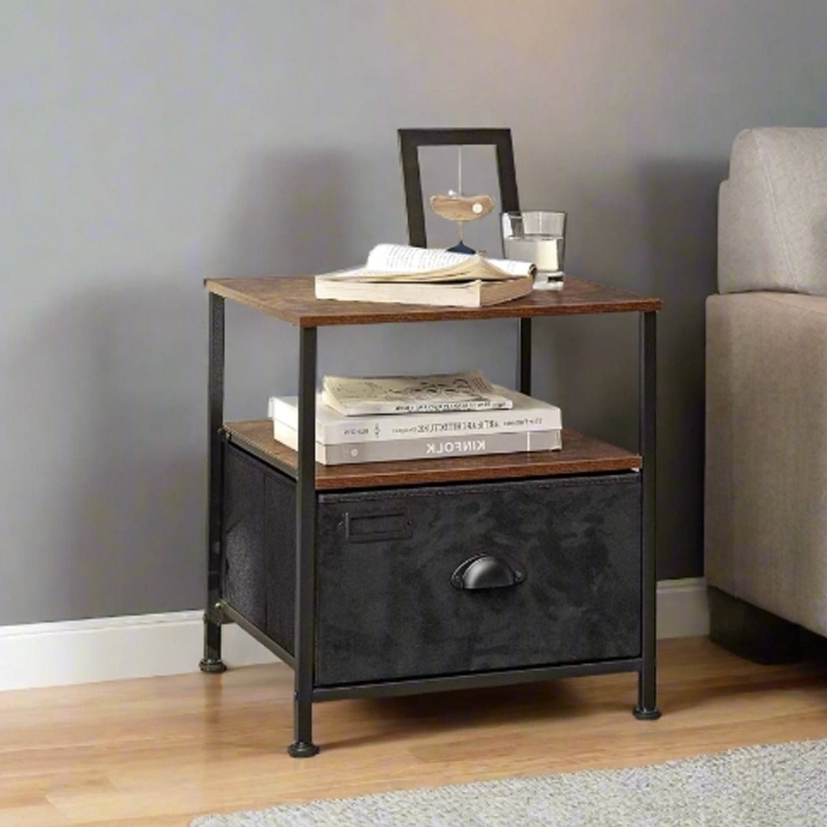 MORVINA Bedside Table Nightstand with Fabric Drawer - Rustic Brown