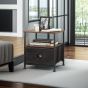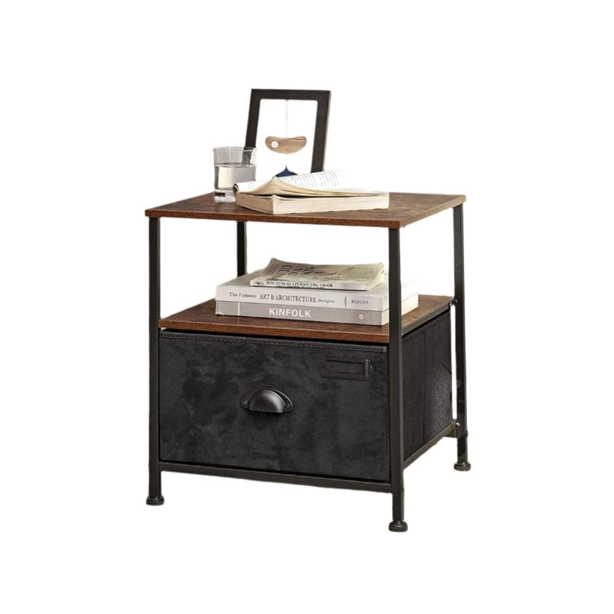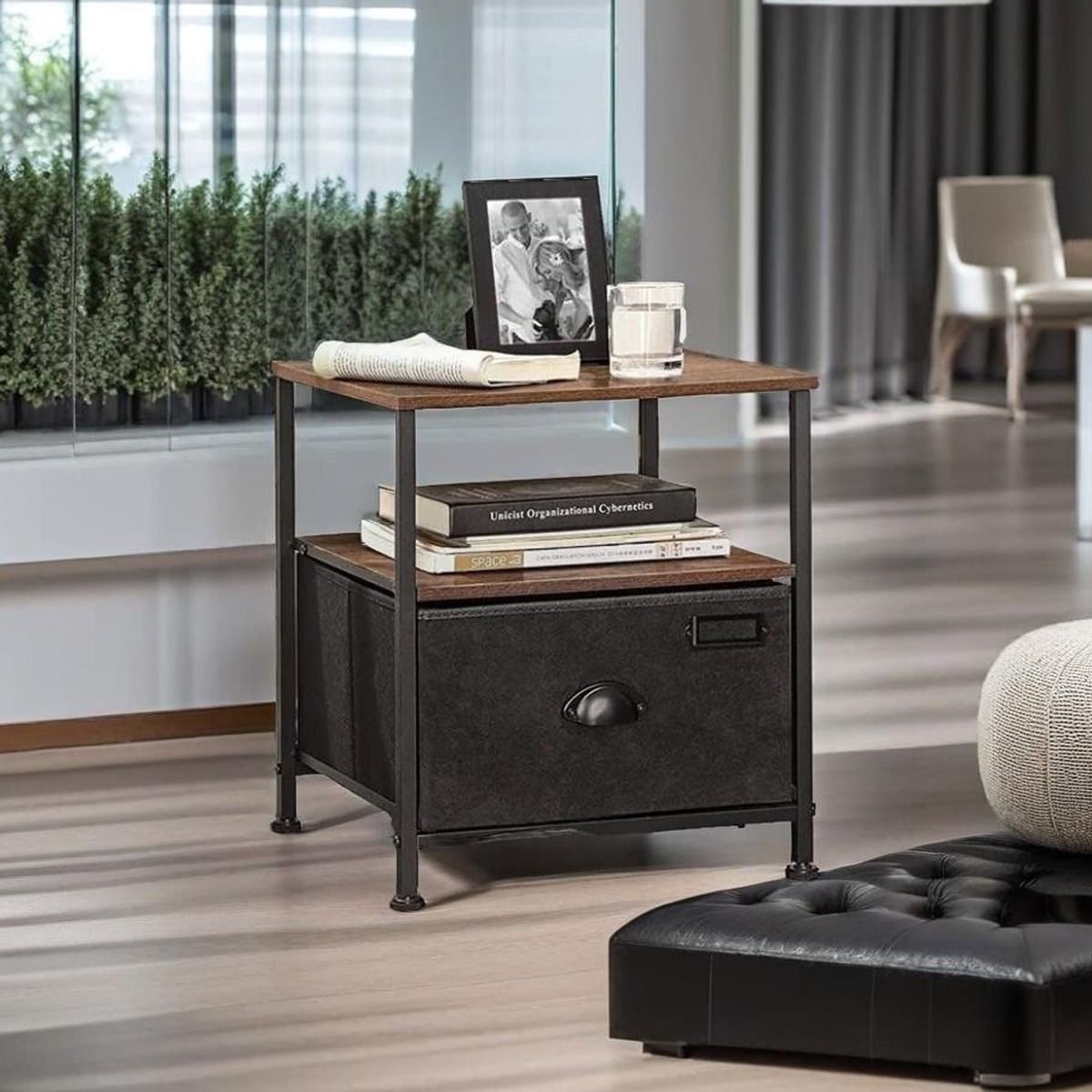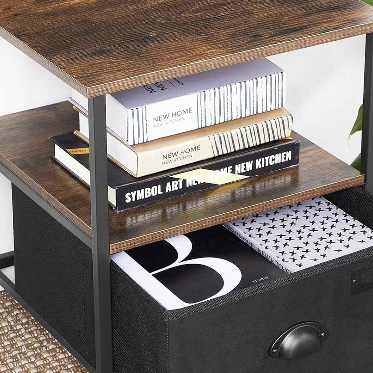 MORVINA Bedside Table Nightstand with Fabric Drawer - Rustic Brown
