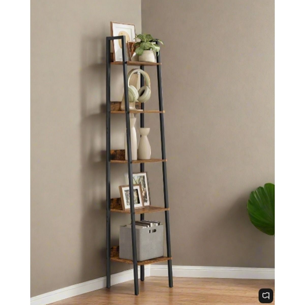 MORVINA Ladder Shelf 5-Tier Narrow Display Rack - Rustic Brown