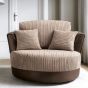 Looking for a grey or brown chenille swivel chair? The Nathaniel fits the bill, quite perfectly. Upholstery for this tub chair is a combination fabric that uses both cord chenille as well as faux suede. The hybrid fabric provides both luxurious feel and opulent aesthetics. A deep foam block seat, fibre filled back cushion and a couple of toss pillows provide all the comfort you need. A lounge chair available in both grey and brown.