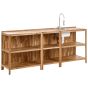 NEVOSA 3 Piece Outdoor Kitchen Set White Tap with Sink Acacia Wood Brown