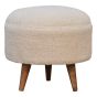 Nordic Style Round Footstool with Curled Cotton Fabric and Solid Wood Legs