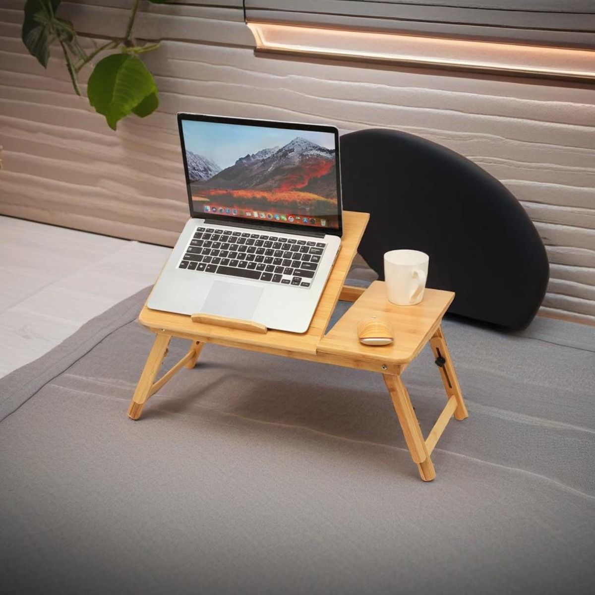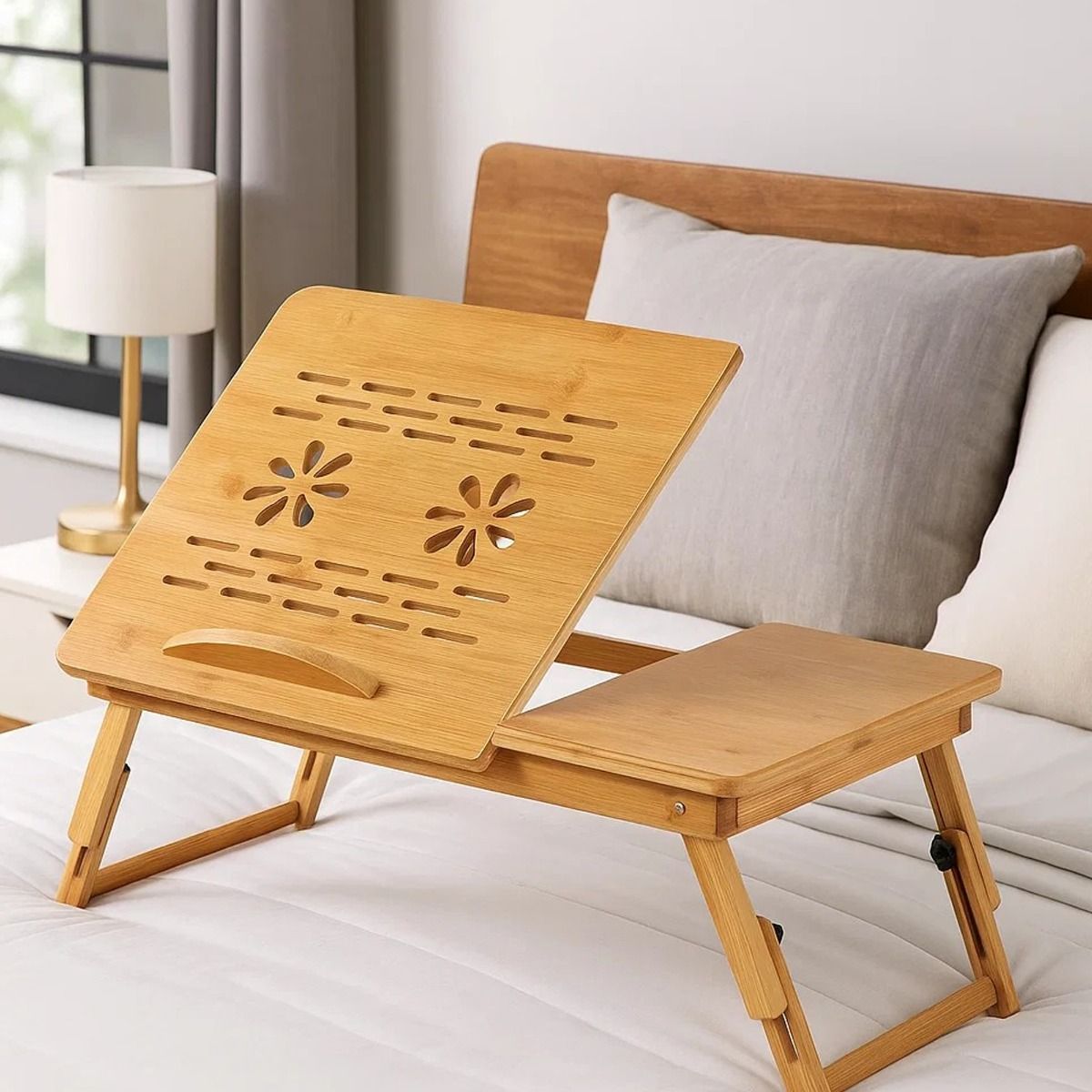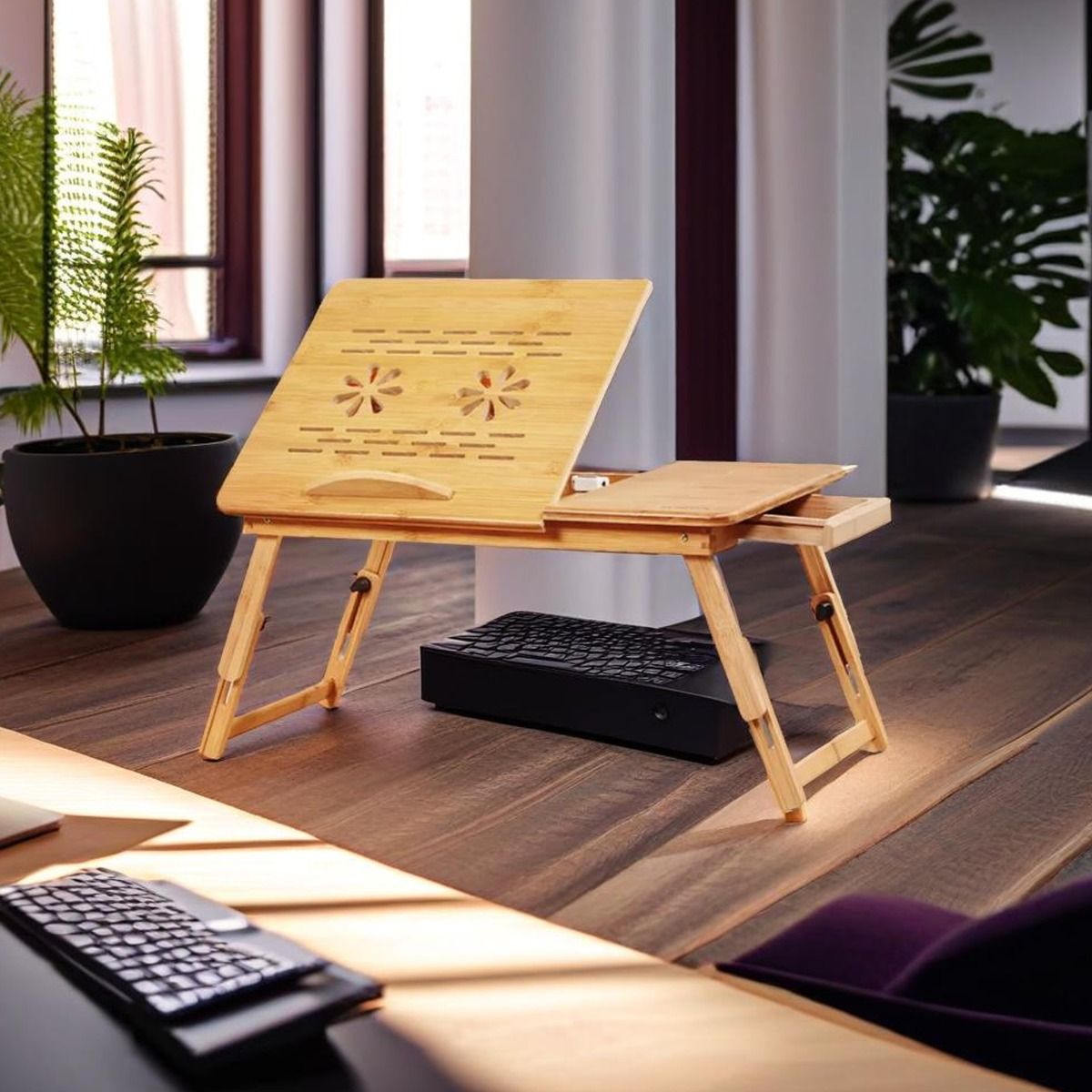 NOVATRA Laptop Table Adjustable Bamboo Bed Tray with Drawer and Folding Legs - Natural