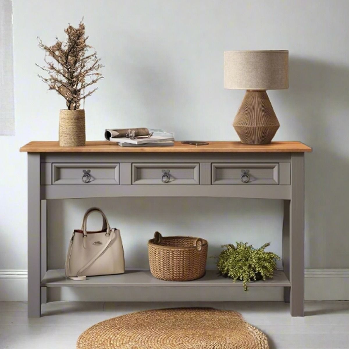 NOVATRA Sideboard Grey Solid Pine 3-Drawer Rustic Cabinet - Grey