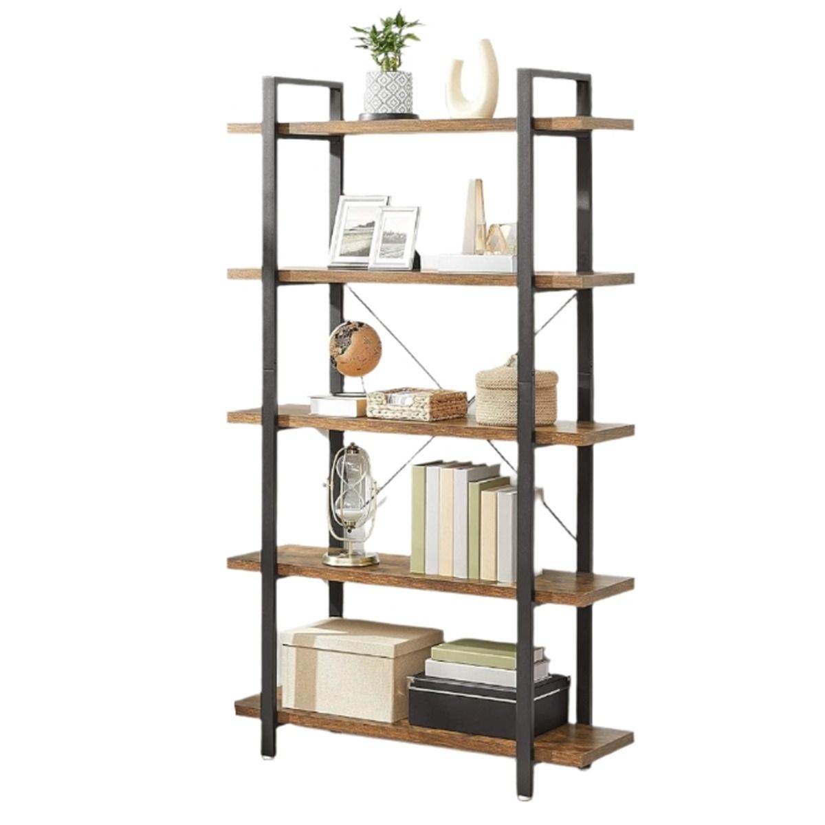NOVIREX Ladder Shelf 5-Tier Large Bookcase Unit - Rustic Brown