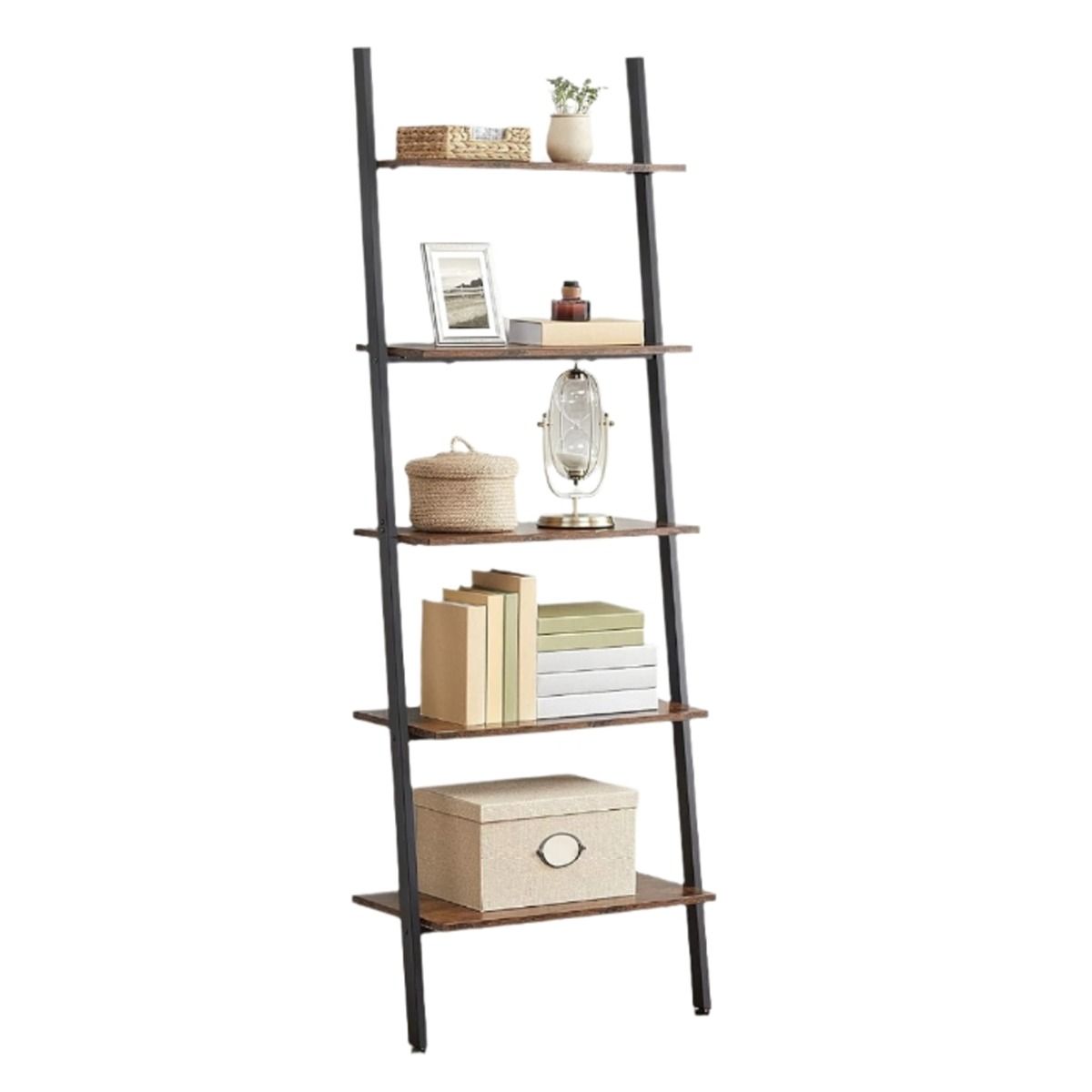 NOVIREX Ladder Shelf 5-Tier Metal and Wood Bookshelf - Rustic Brown