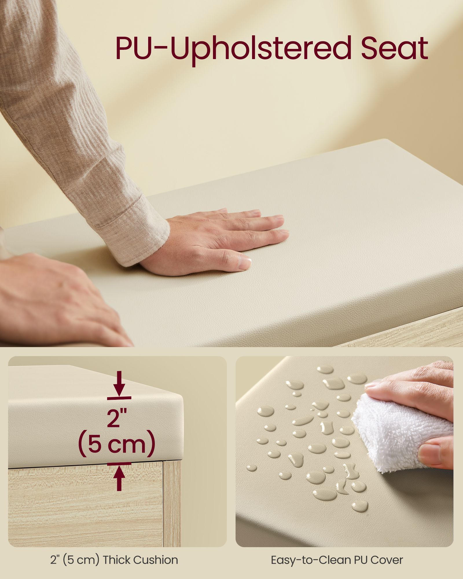 NOVRIA Shoe Bench - 2 Tier with Drawer Padded Seat Small Sized Bench - Natural Beige