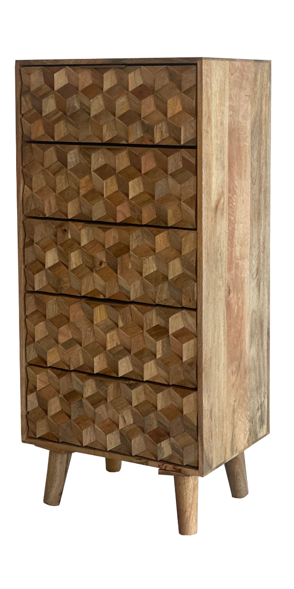 GRIMSBY Oak Finish Chest of Drawers - Tallboy, Medium-sized, 5 Drawers, Ready Assembled