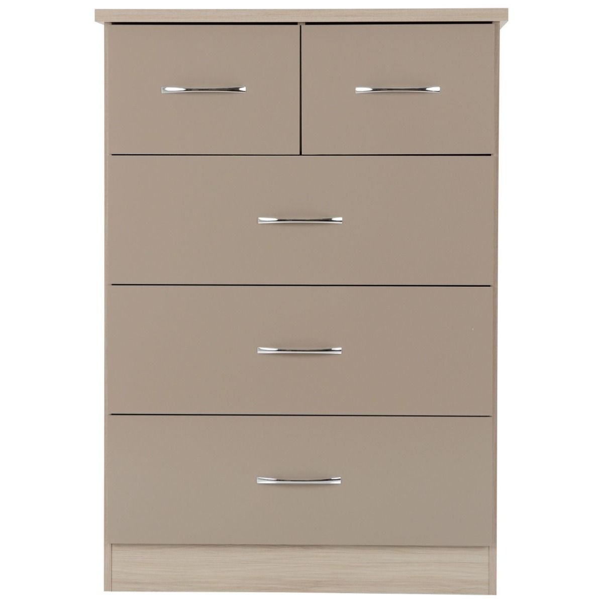 NEWBIGGIN III Oak Finish Chest of Drawers - Medium-sized, 5 Drawers