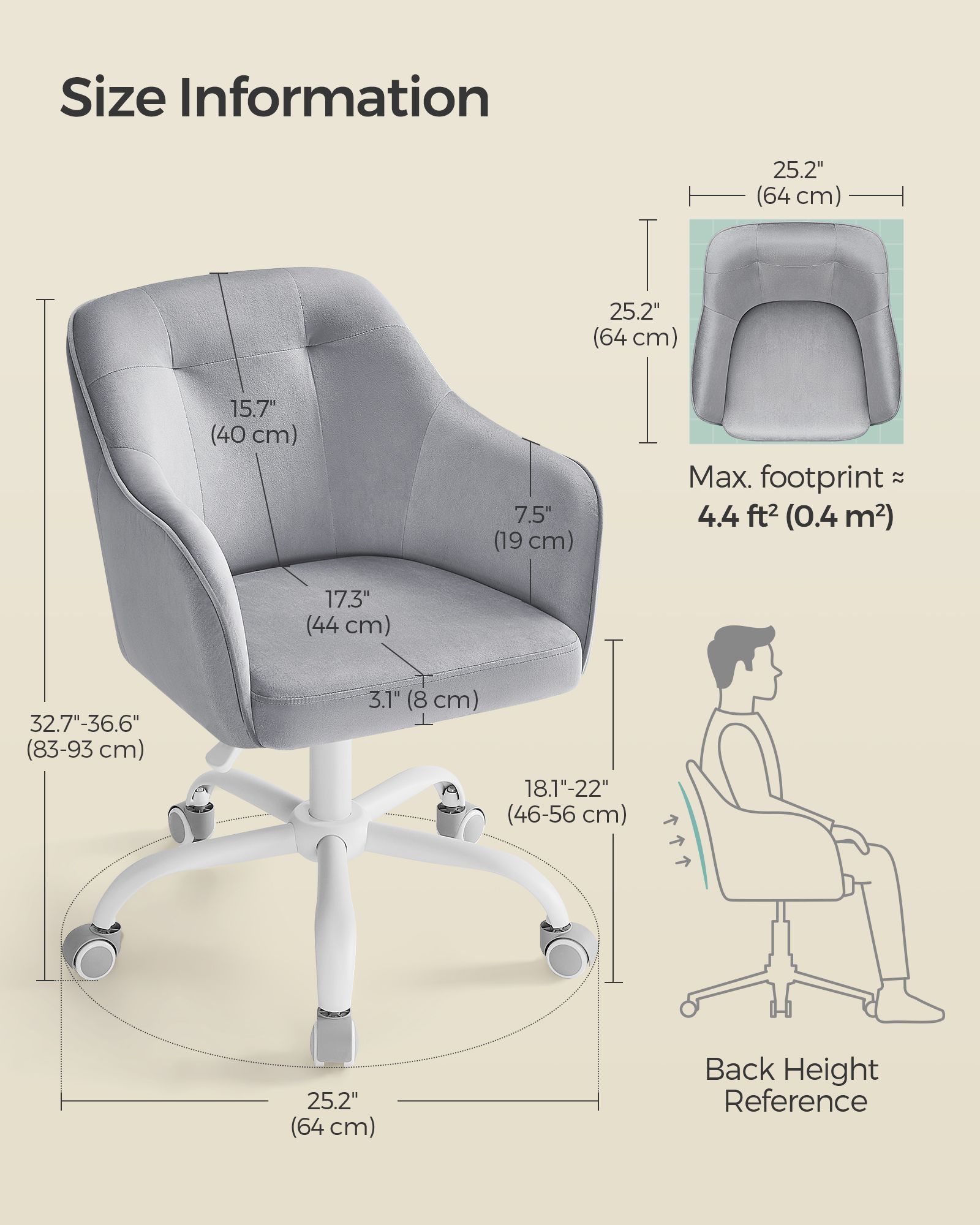 Office Chair - ORASO Velvet Swivel Study Chair - Dove Grey