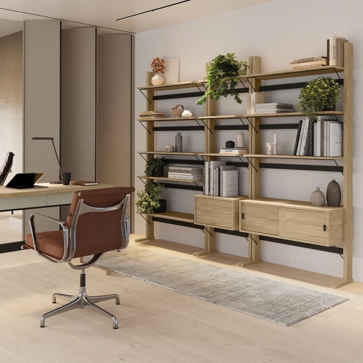 OLIVANNE 3 Shelve 1 Cabinet Bookcase - Oiled Oak