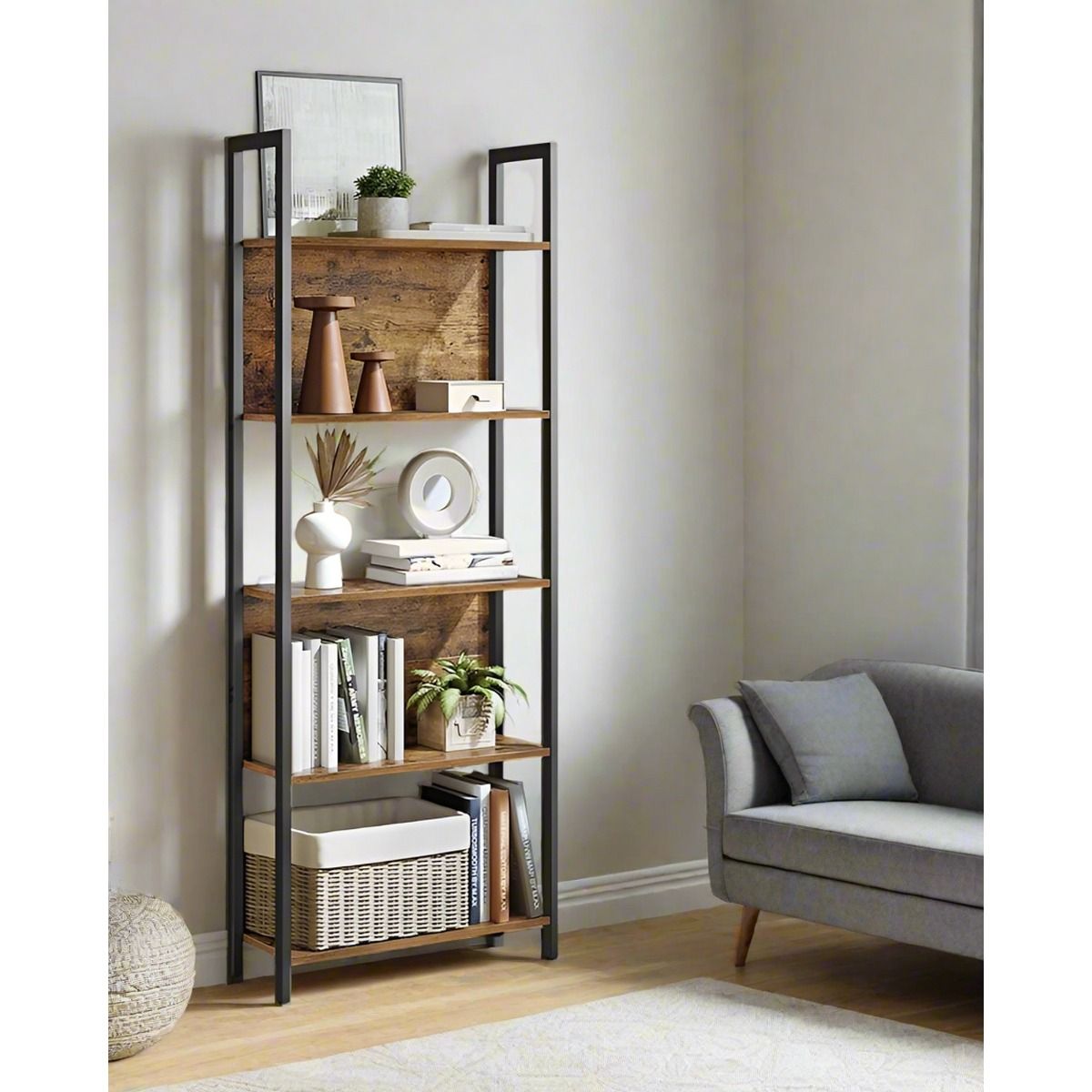 OLVANTE Bookcase 6-Shelf Storage Unit with Steel Frame - Rustic Brown