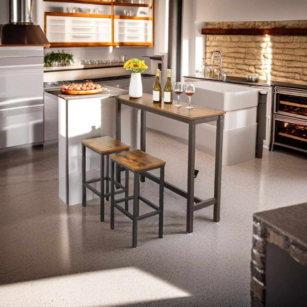 ORIVANE Bar Table Desk 120x40x100 cm with Sturdy Metal Frame - Vintage Brown and Black