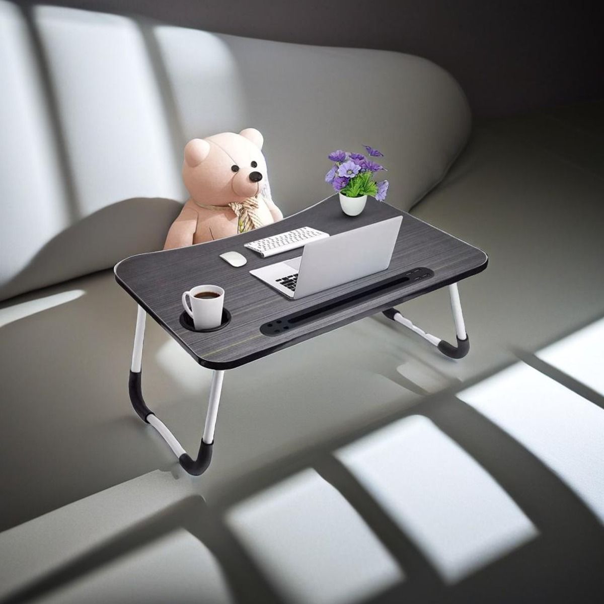 ORIVANE Laptop Table Folding Bed Tray Desk with Cup Holder - Black