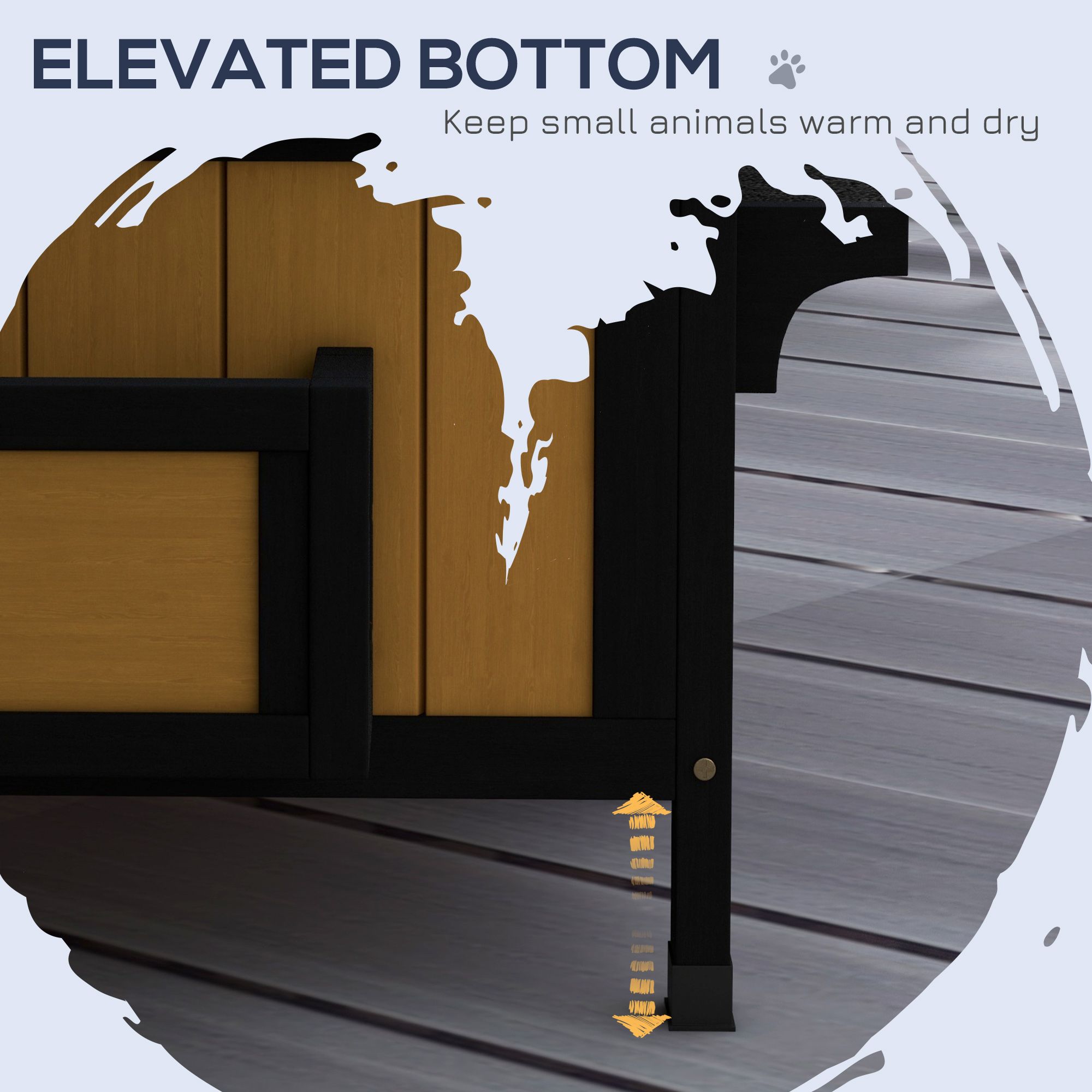 PAWSTER Wooden Cat House with Flower Pot, Windows, Multiple Entrances, Water-Resistant Roof for Outdoor - Yellow