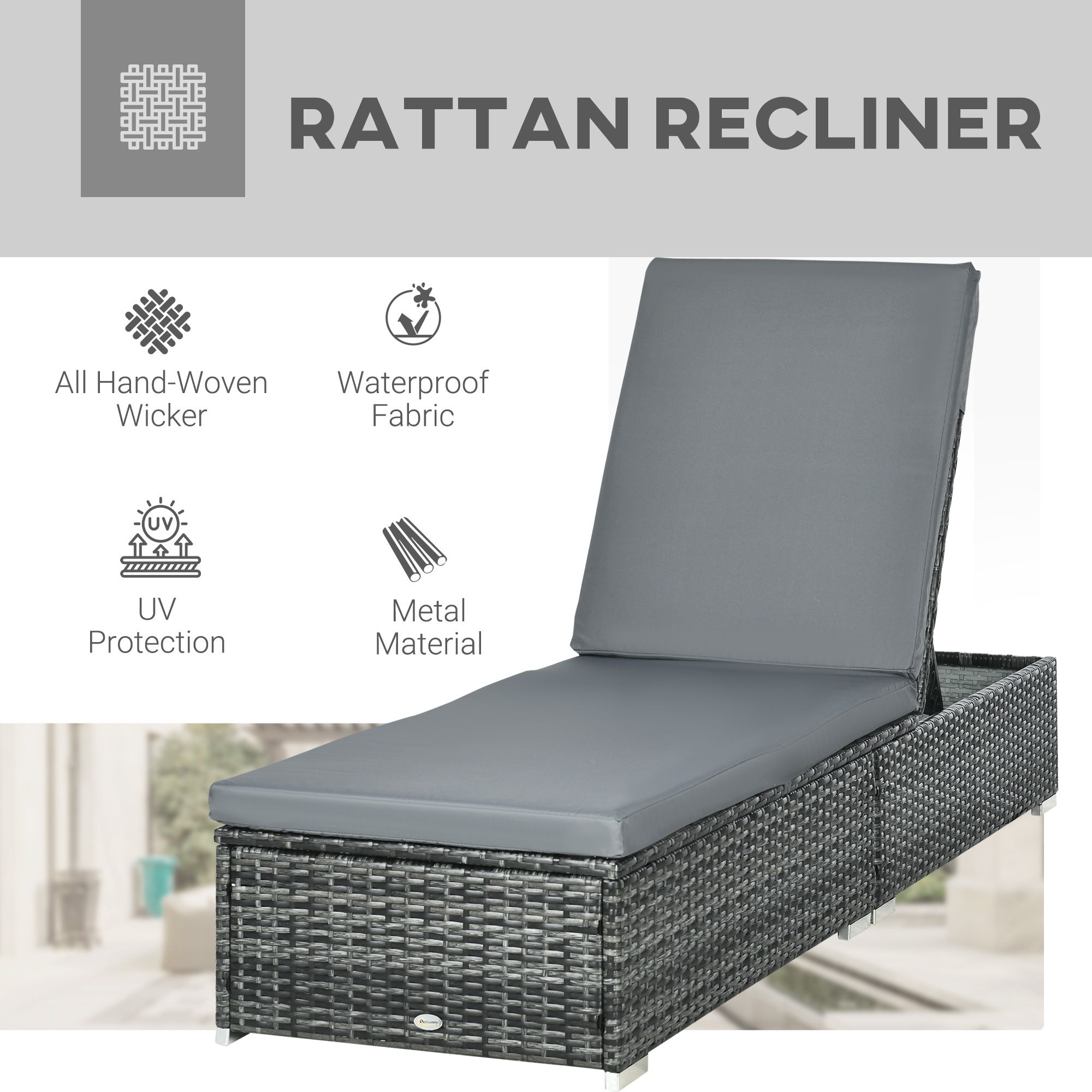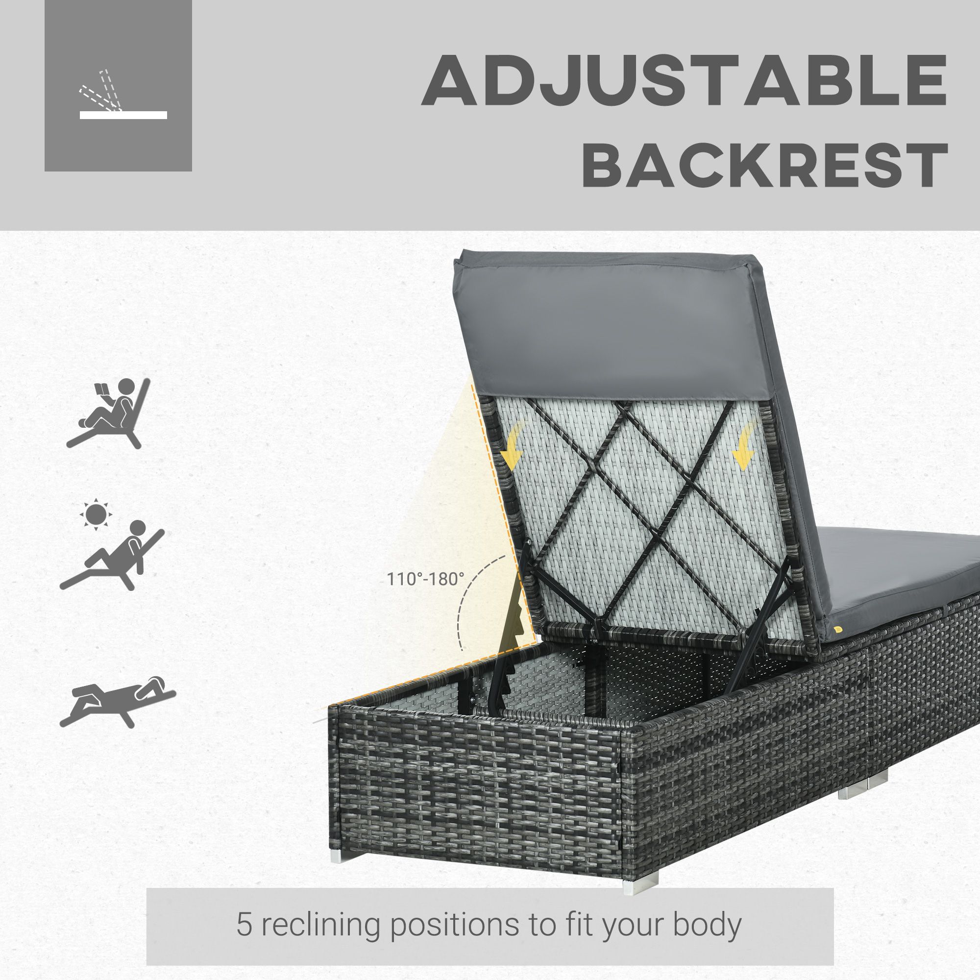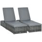 PE Rattan Sun Loungers set of 2 w/ Cushion, 2 Pcs Garden Sunbed Furniture w/ 5-Level Backrest, Reclining Patio Wicker Bed Chair, Grey