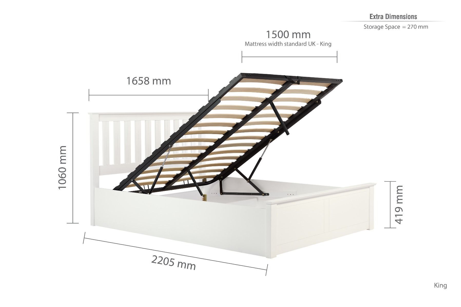 The maximum weight load for the Phoenix Ottoman frame is 350 kg and can support mattresses up to the weight of 45 kg. Please note the mattress needs to be on the bed for the pistons to work. Birlea beds are only suitable for a UK standard size mattress and the recommended maximum mattress height is 203 mm.