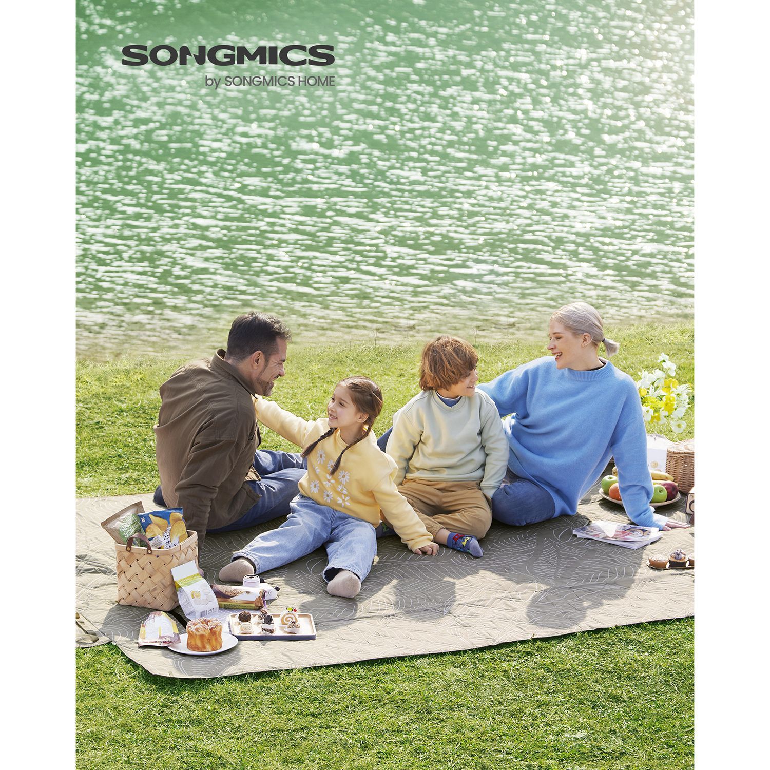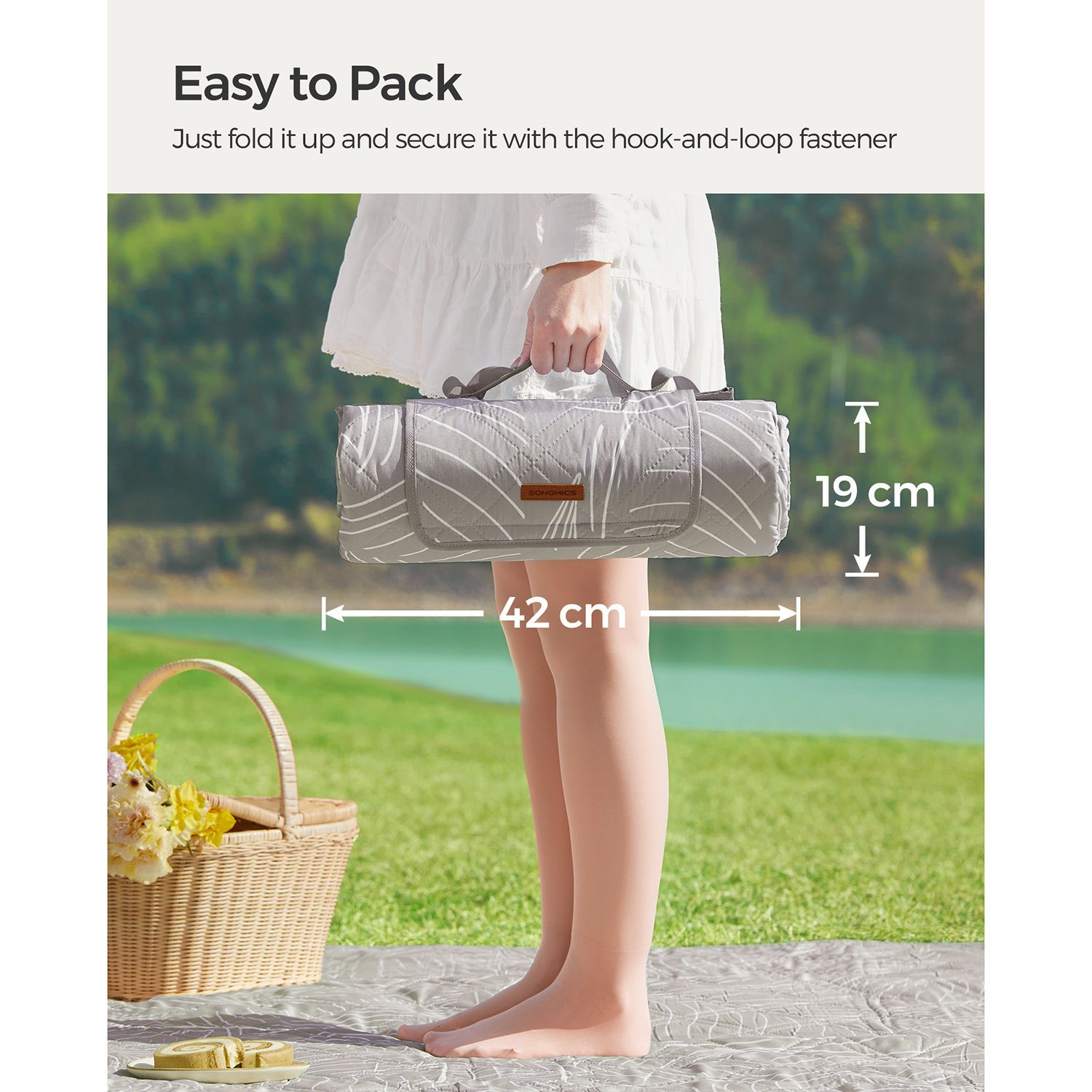 Picnic Blanket 300 x 200 cm Leaf Pattern and Khaki