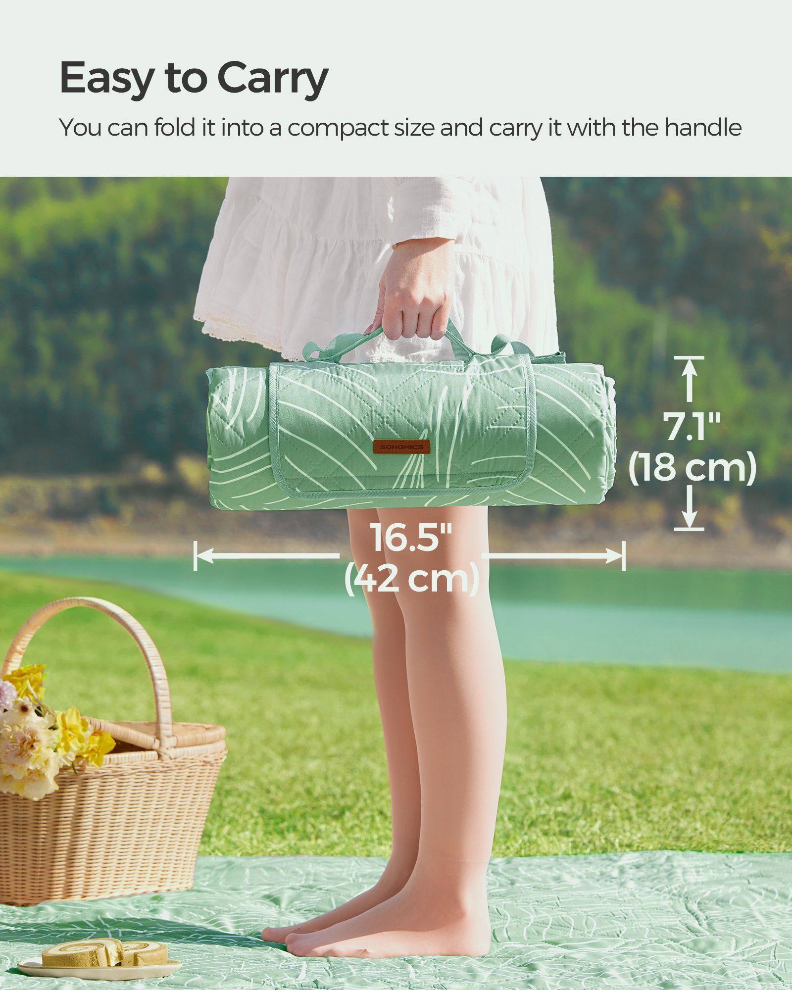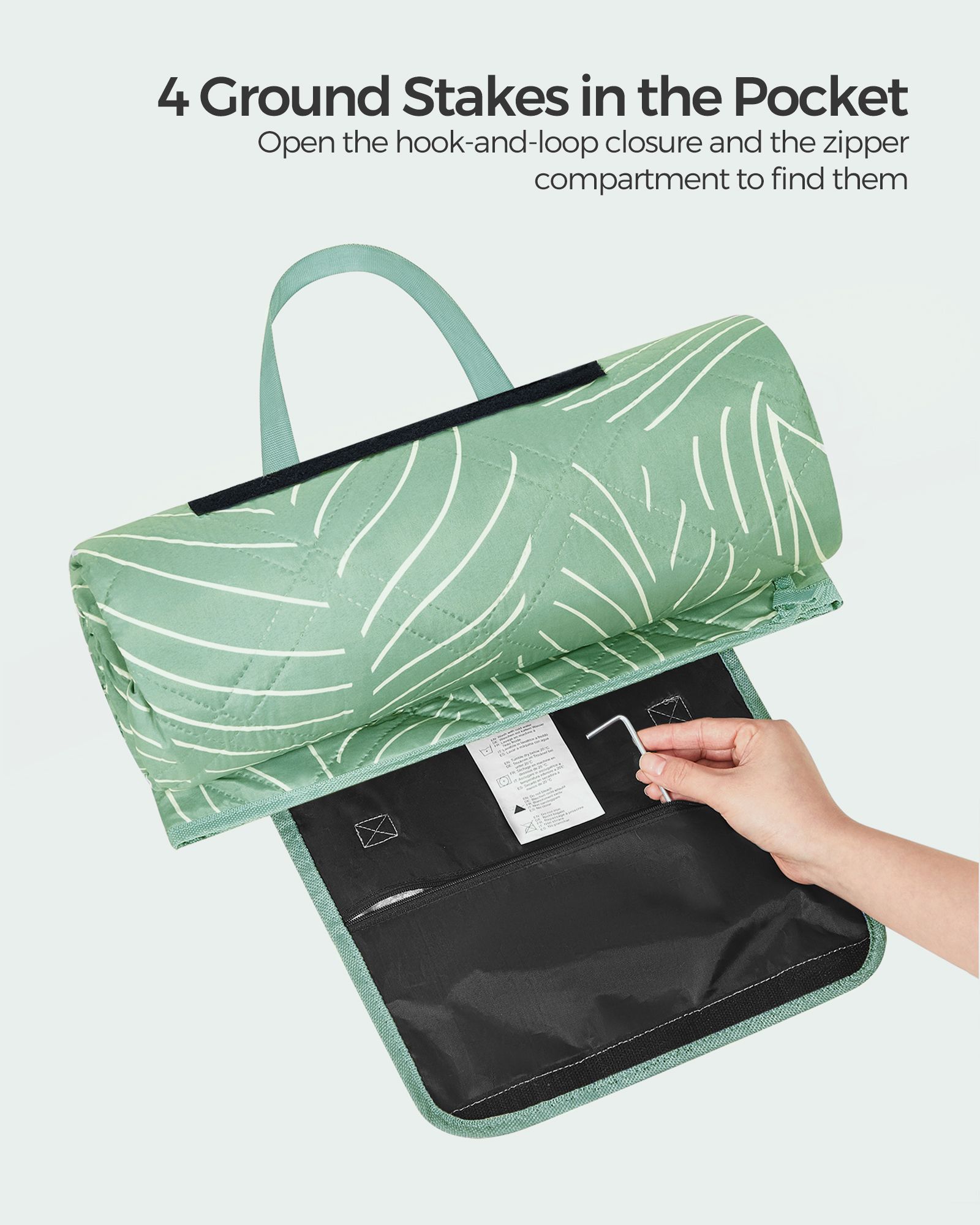 Picnic Blanket - AVODA Leaf Pattern 200 x 200 cm Outdoor Blanket - Mint Green