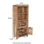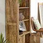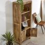 Combining a fresh modern look with rustic reclaimed wood and beautifully crafted into a sturdy bookcase for any room in your home. Featuring 3 deep open display areas you can showcase your books / ornaments etc and store any unwanted items out of sight in the spacious cupboard. The rough sawn laquered finish highlights the natural beauty of the wood with a handmade unique look and feel. Made entirely using 100% Eco sourced solid natural wood by skilled craftsmen in India.