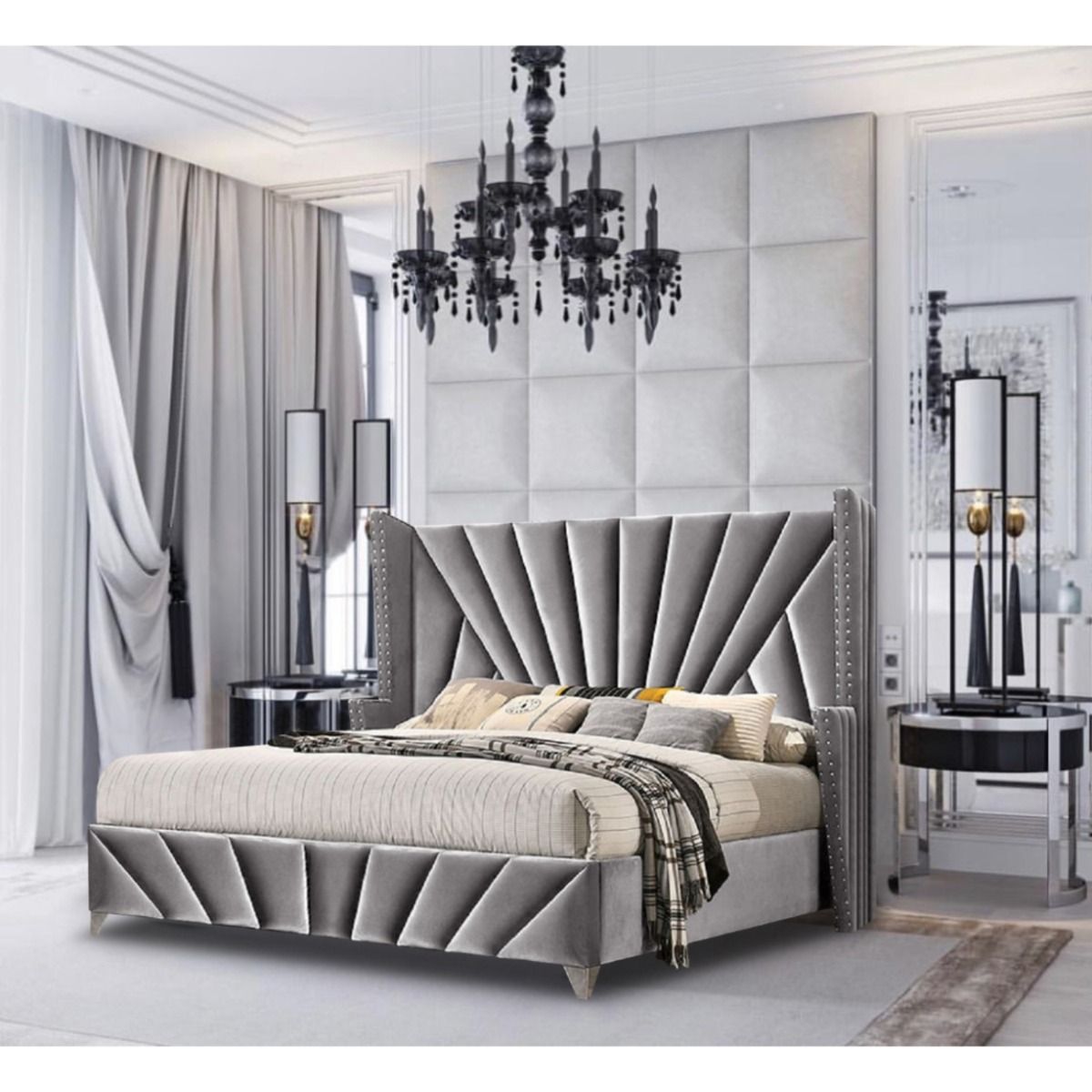 Premiere Upholstered Plush Velvet Fabric Beds Grey - 5 Sizes