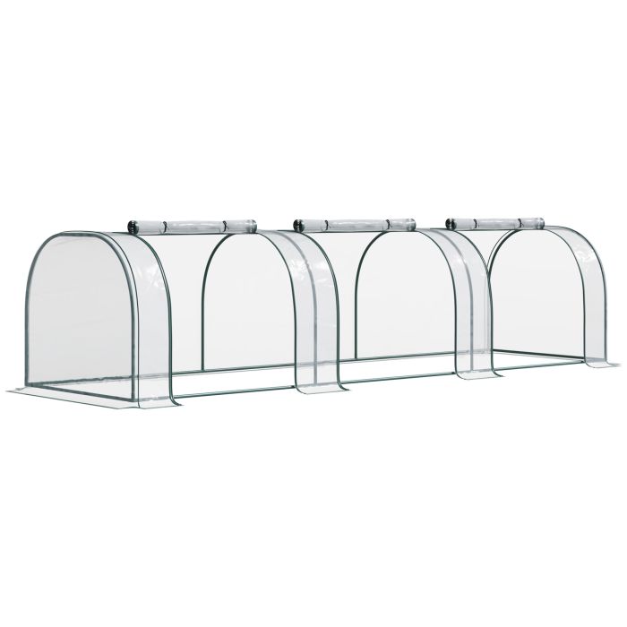 PVC Tunnel Greenhouse Plant Grow House Steel Frame for Garden Backyard with Zipper Doors, 350Lx100Wx80H cm, Transparent