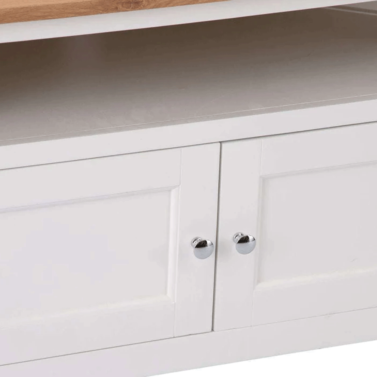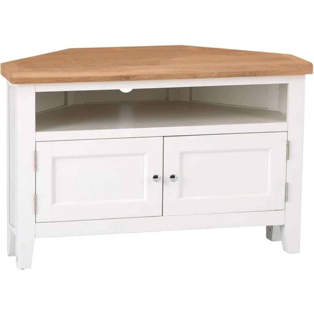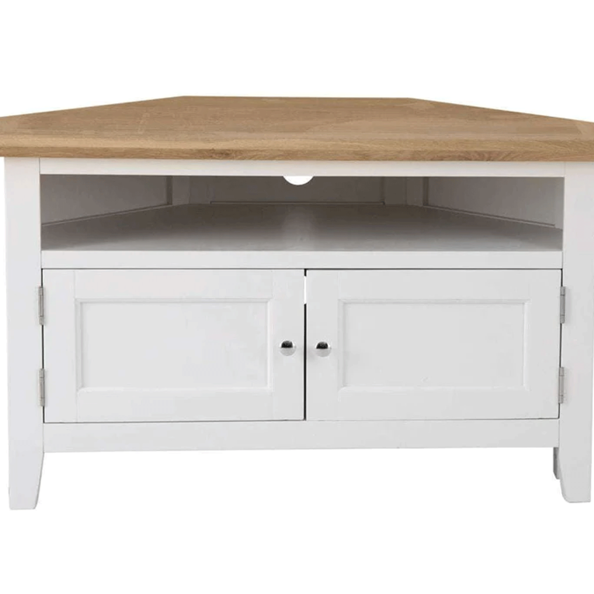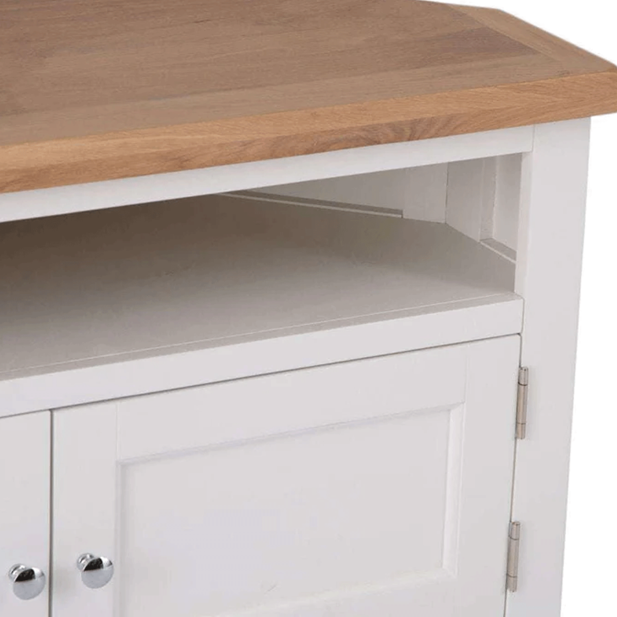- Corner Media Unit with Oak Top in White