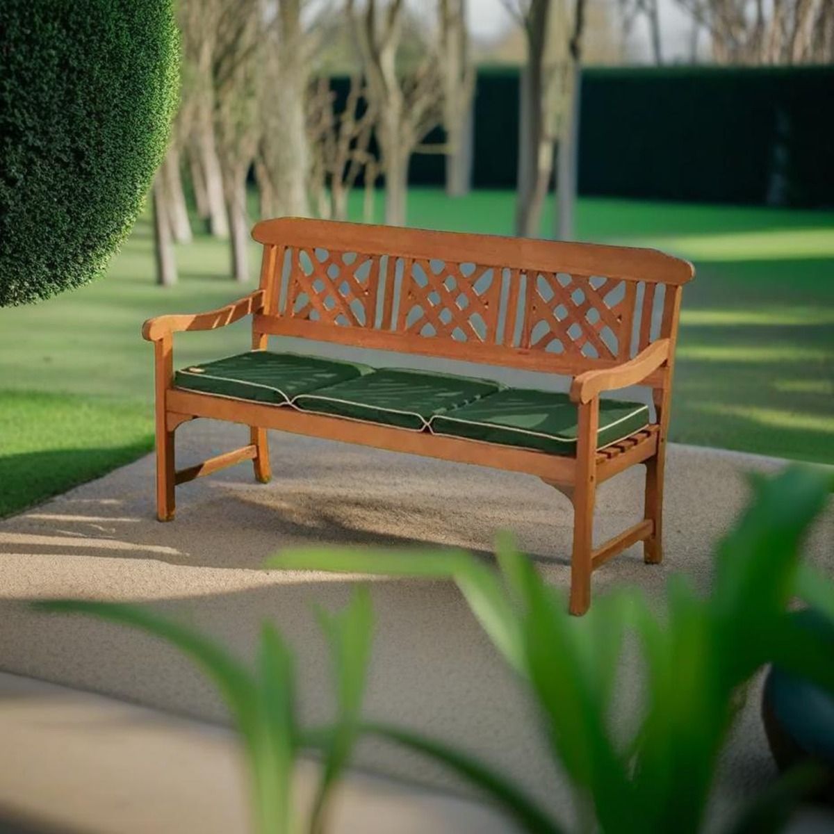 QUENTARA Garden Bench 3-Seater Hardwood Outdoor Bench Eucalyptus Wood - Brown