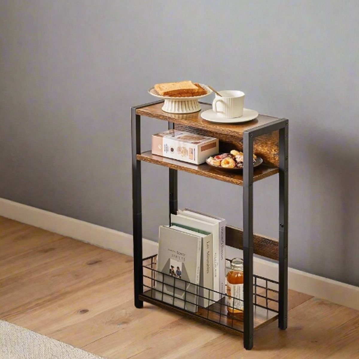 QUENTARA Side Table 3-Tier Slim Enad Table for Small Spaces - Rustic Brown