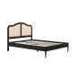 Rattan Headboard Styled Solid Slats Black Oak Bed Frame - Kingsize 5ft