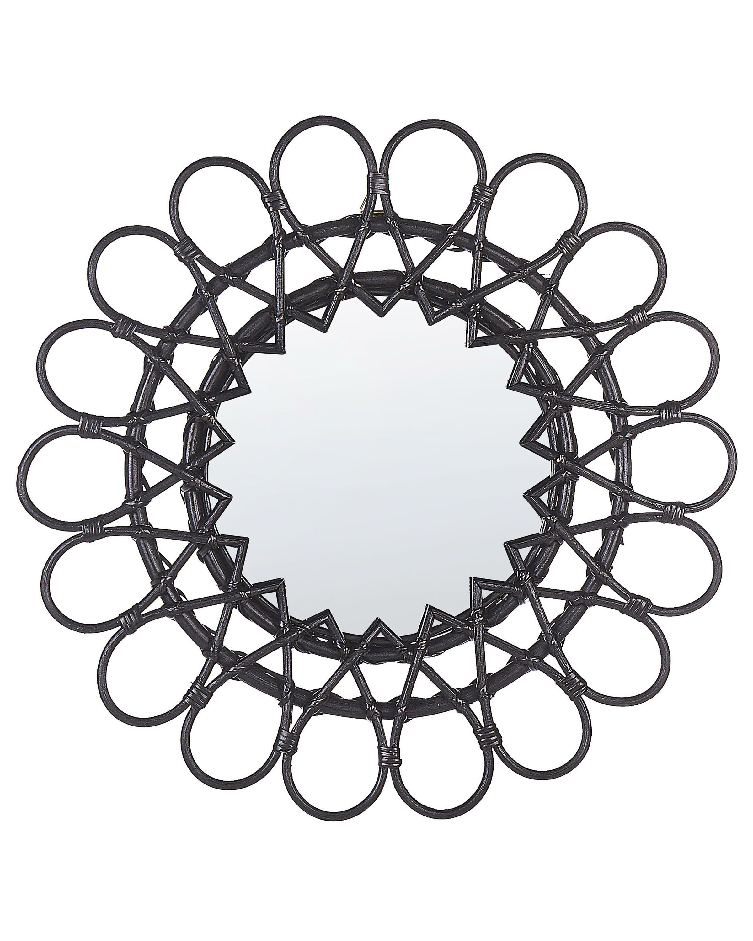 Place this mirror on your wall to instantly add a boho vibe to your home. The piece is made out of natural rattan, which makes it durable and easy to clean. It also allows the mirror to last for many years, enhancing the interior of your home. Hang it in your living room or bedroom to enlarge the space visually and attract attention of your guests. Details: Color: Black. Main material: Rattan. Weight: 1 Assembly: Does Not Require Assembly