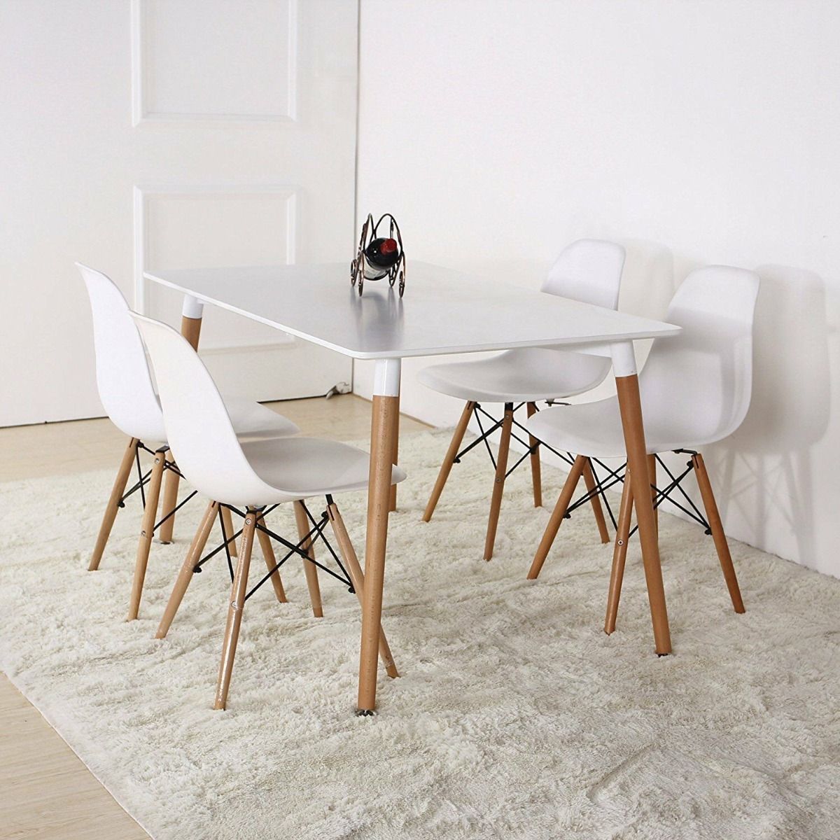 Retro Design Wooden Legs Dining Table - White