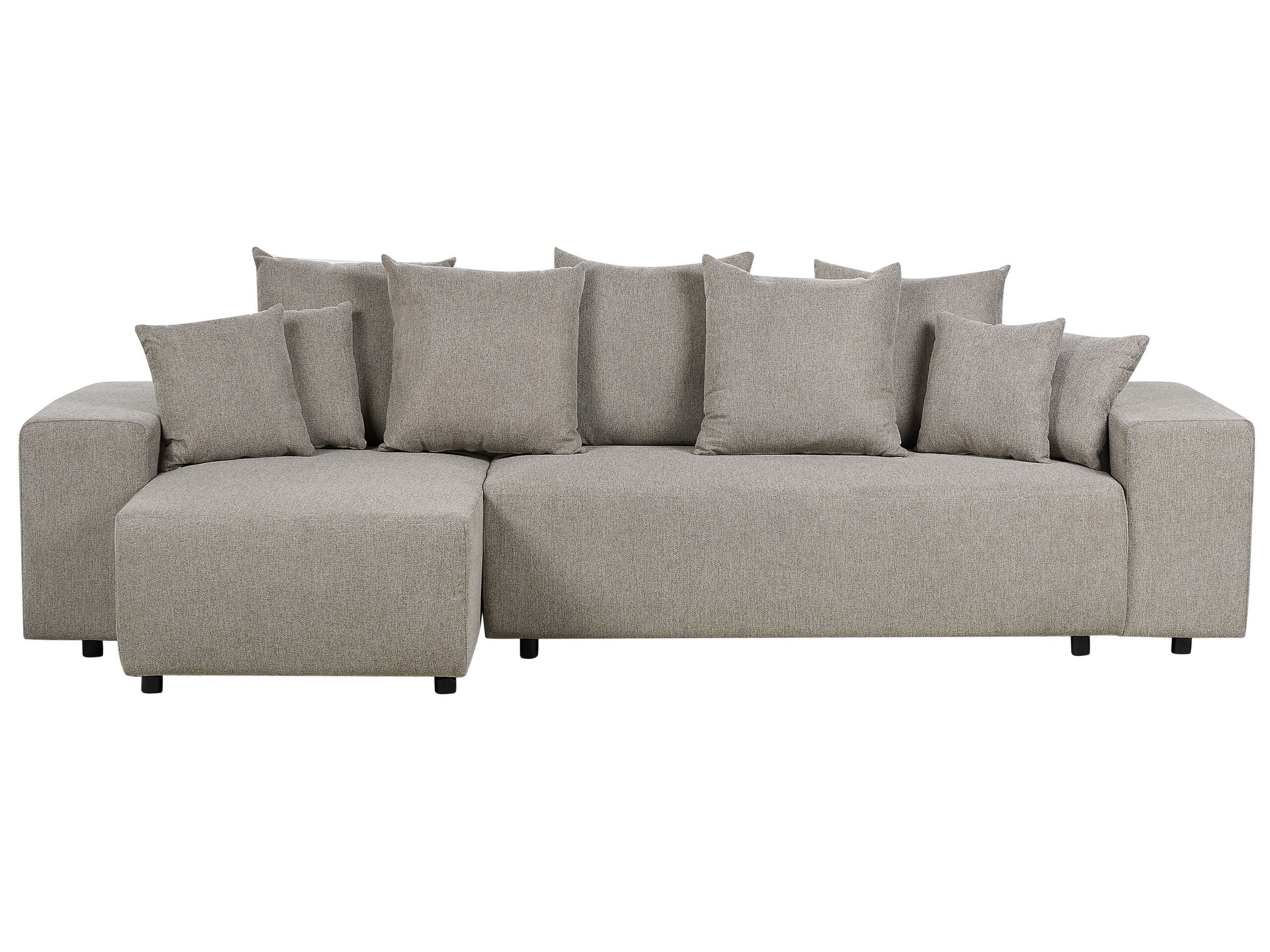 Right Hand Fabric Corner Sofa Bed with Storage Taupe LUSPA